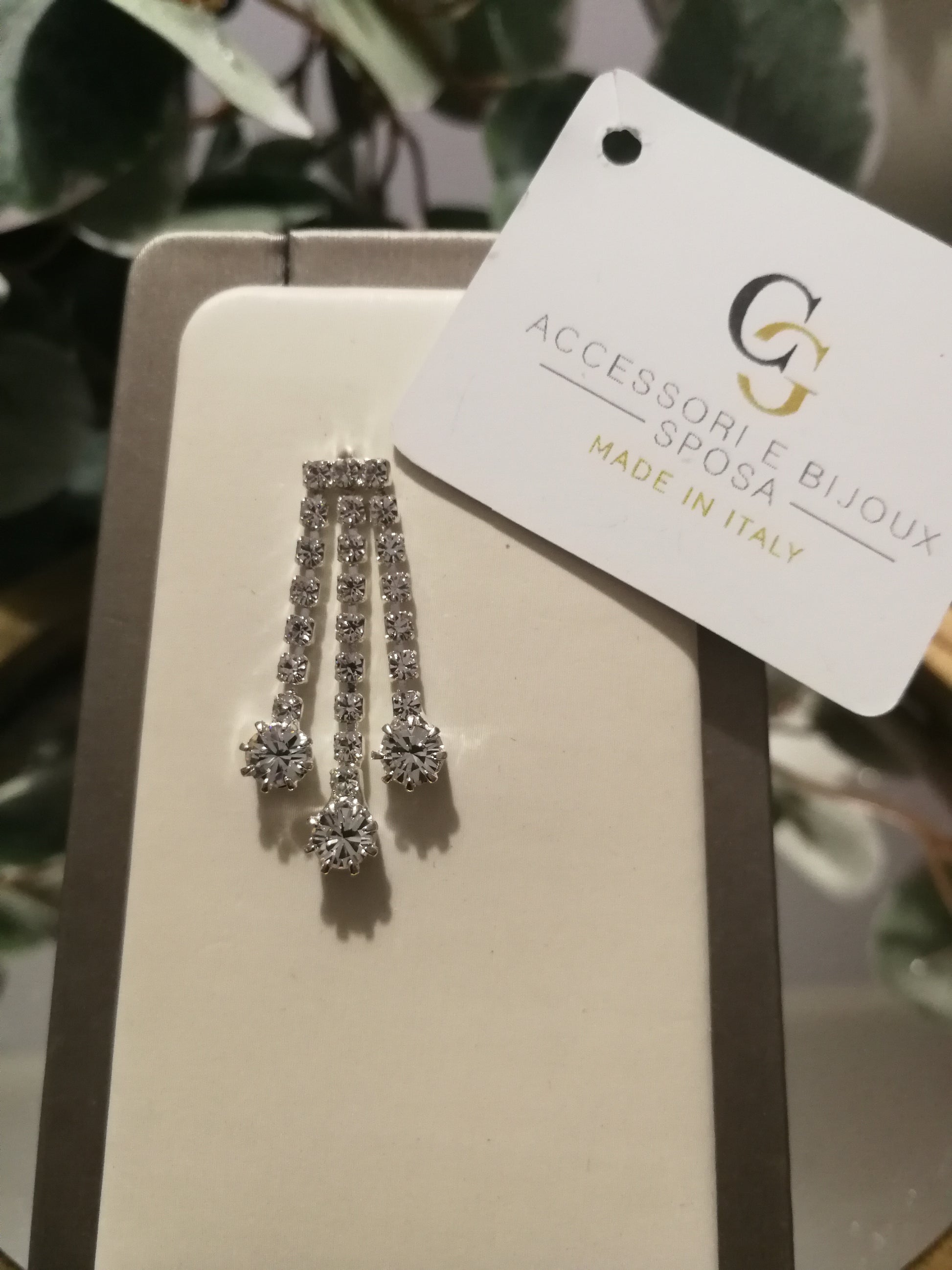 Orecchini chandelier realizzati in ottone placcato oro o argento con lega in stagno, arricchiti da strass e pietre Swarovski, galvanica nickel free.