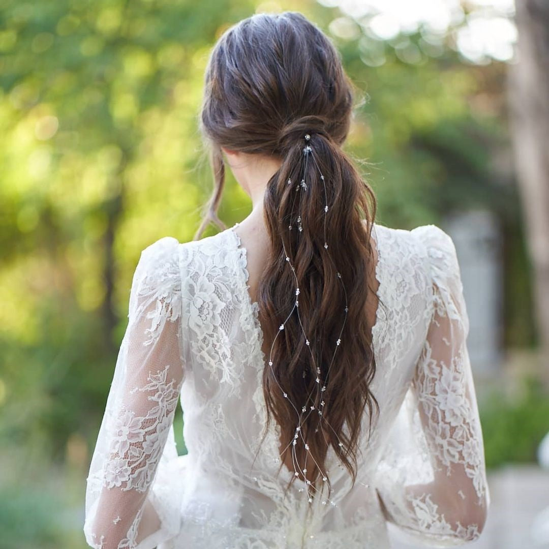 Forcina con punto luce e fili nylon con cristalli swarovski, fatto a mano, made in italy, personalizzabile.