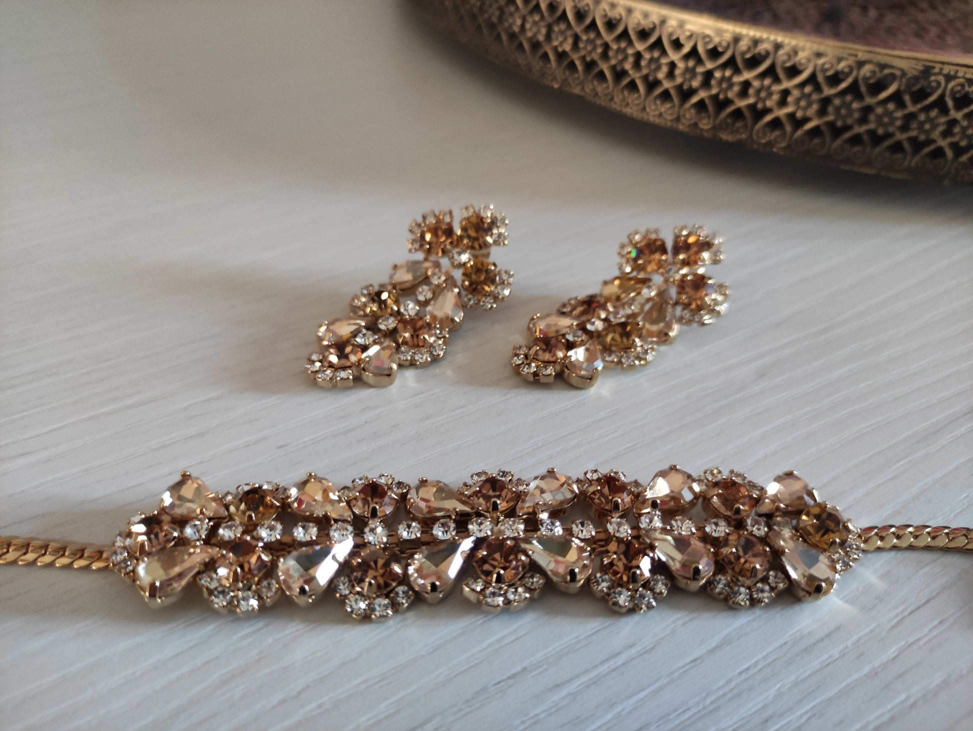 Bracciale realizzato in ottone placcato oro o argento con lega in stagno, impreziosito da strass e pietre Swarovski in vari tagli, galvanica nickel free.