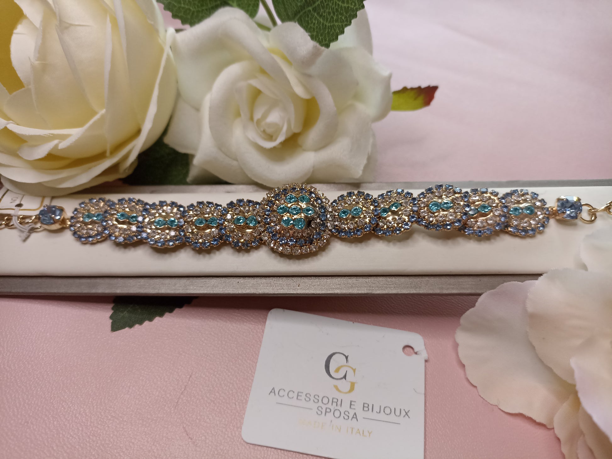 Bracciale realizzato in ottone placcato oro o argento con lega in stagno, impreziosito da strass e pietre Swarovski in vari tagli, galvanica nickel free.