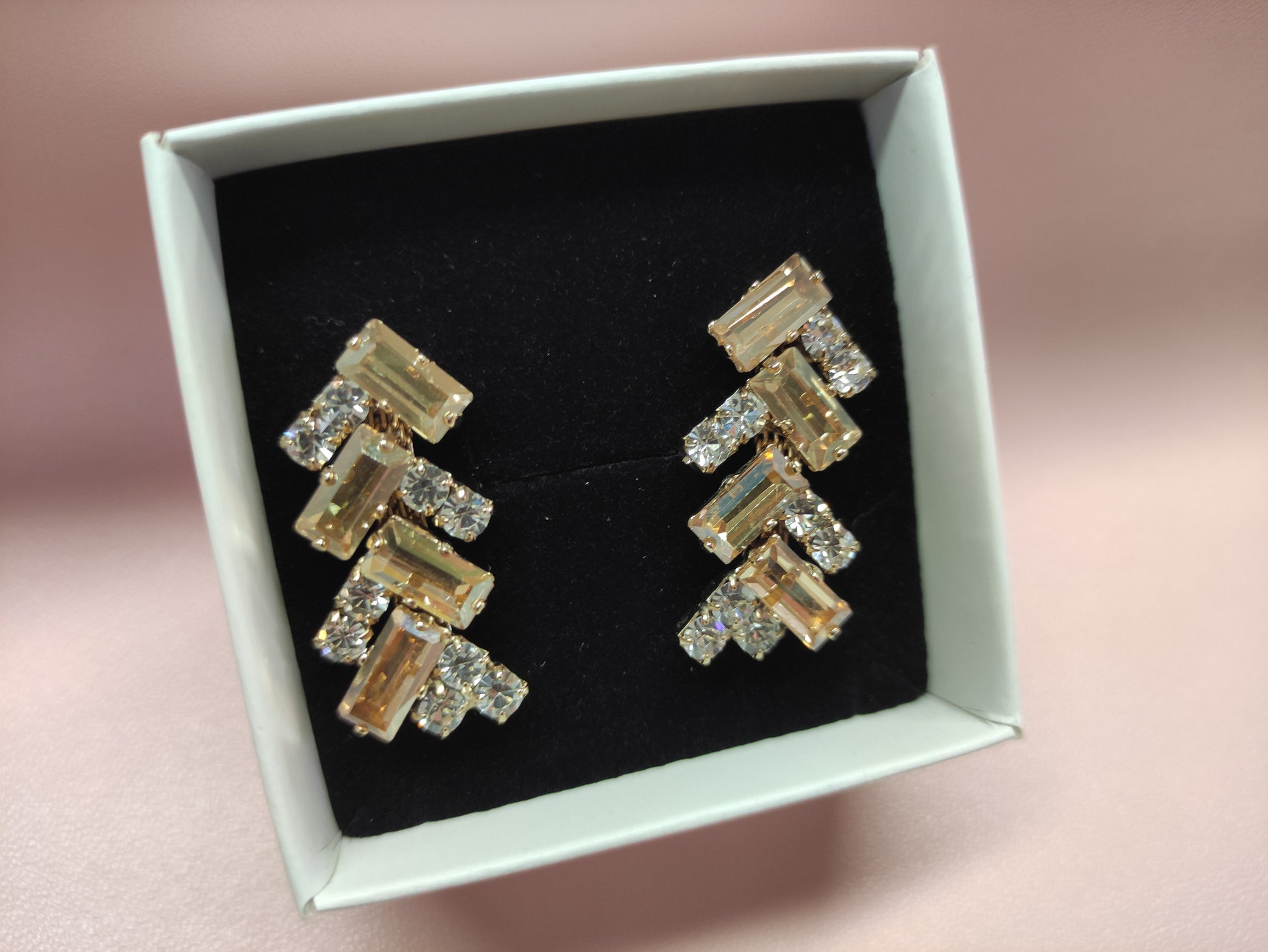 Orecchini realizzati in ottone placcato oro o argento con lega in stagno, arricchiti da strass e pietre Swarovski, galvanica nickel free.