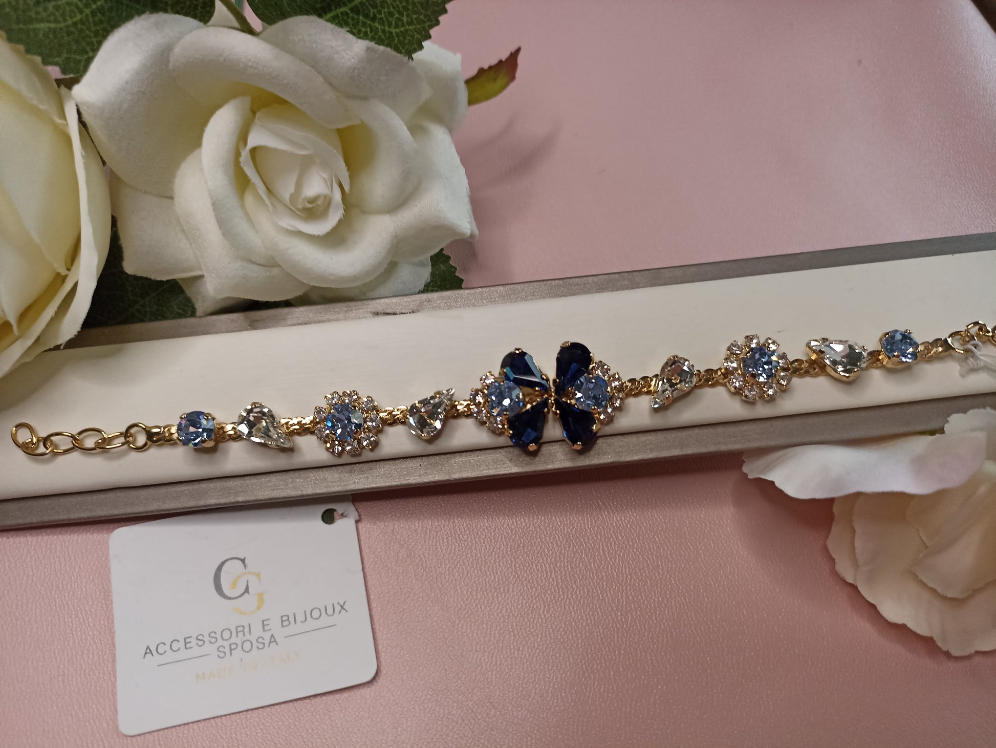 Bracciale realizzato in ottone placcato oro o argento con lega in stagno, impreziosito da strass e pietre Swarovski in vari tagli, galvanica nickel free.