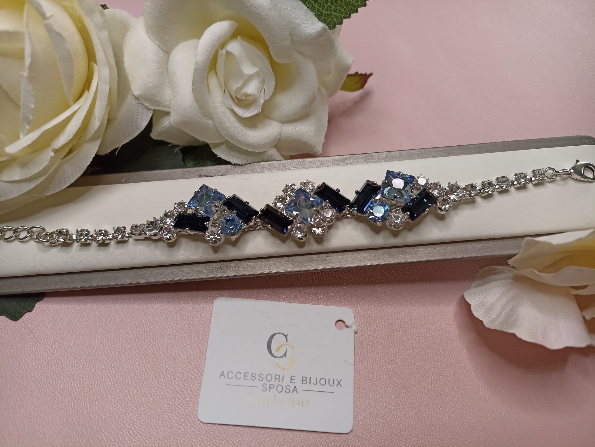 Bracciale realizzato in ottone placcato oro o argento con lega in stagno, impreziosito da strass e pietre Swarovski in vari tagli, galvanica nickel free.