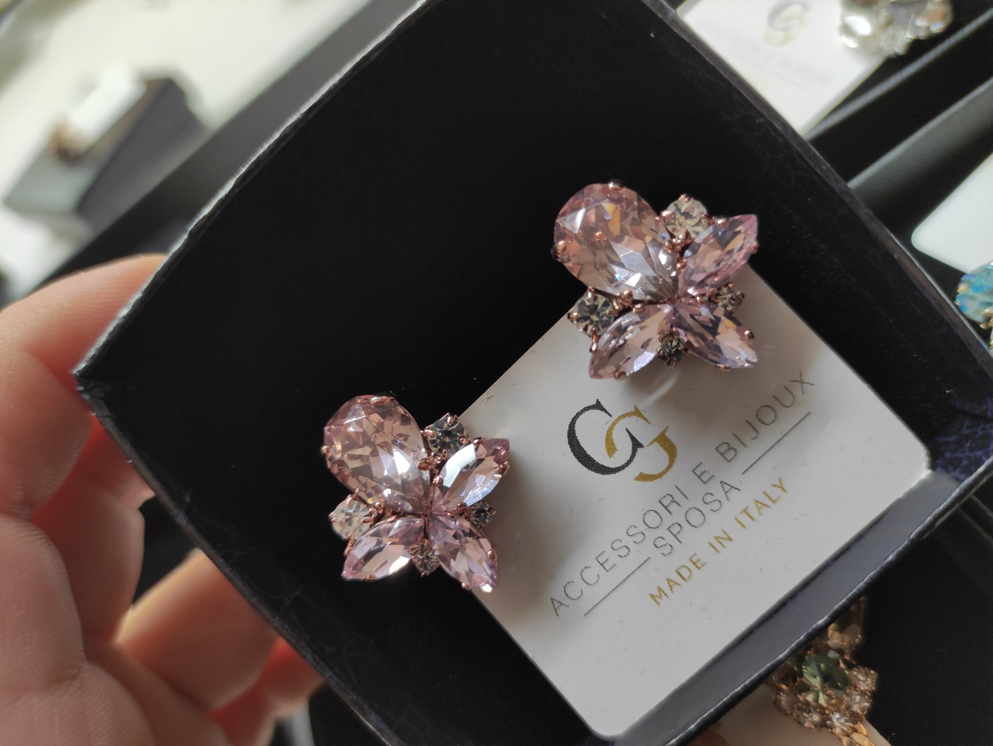 Orecchini realizzati in ottone placcato oro o argento con lega in stagno, impreziositi da strass e pietre Swarovski, galvanica nickel free.
