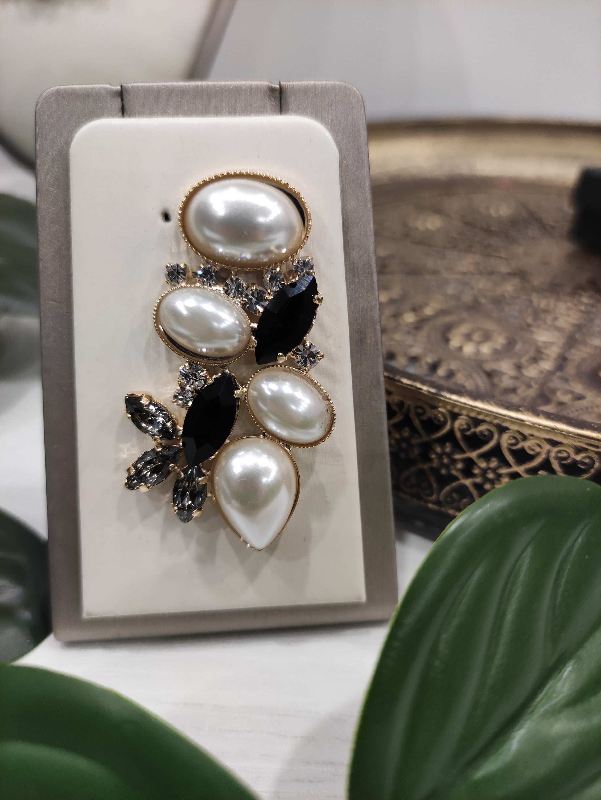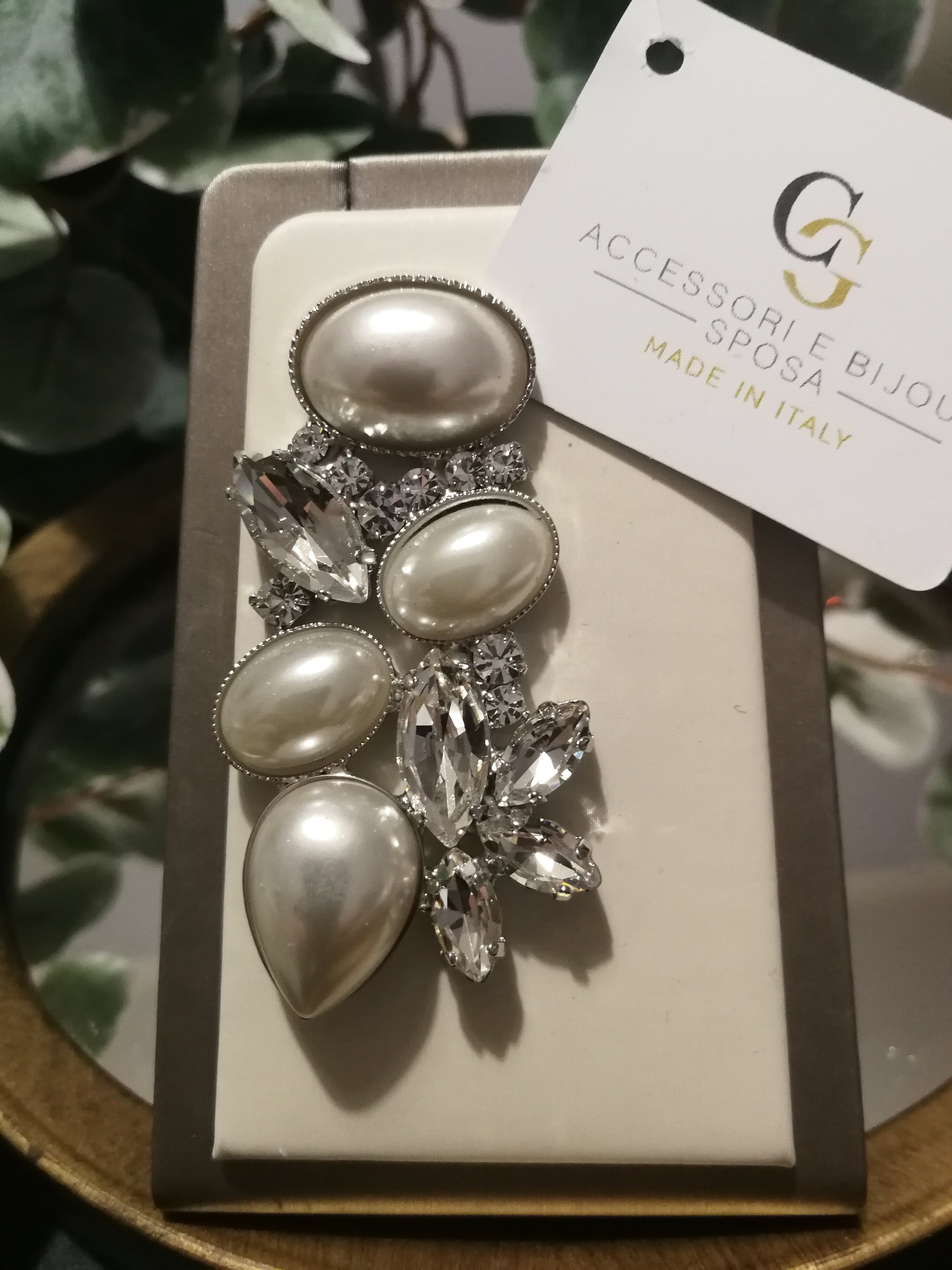 Orecchini realizzati in ottone placcato oro o argento con lega in stagno, arricchiti da strass e pietre Swarovski e perle, galvanica nickel free.