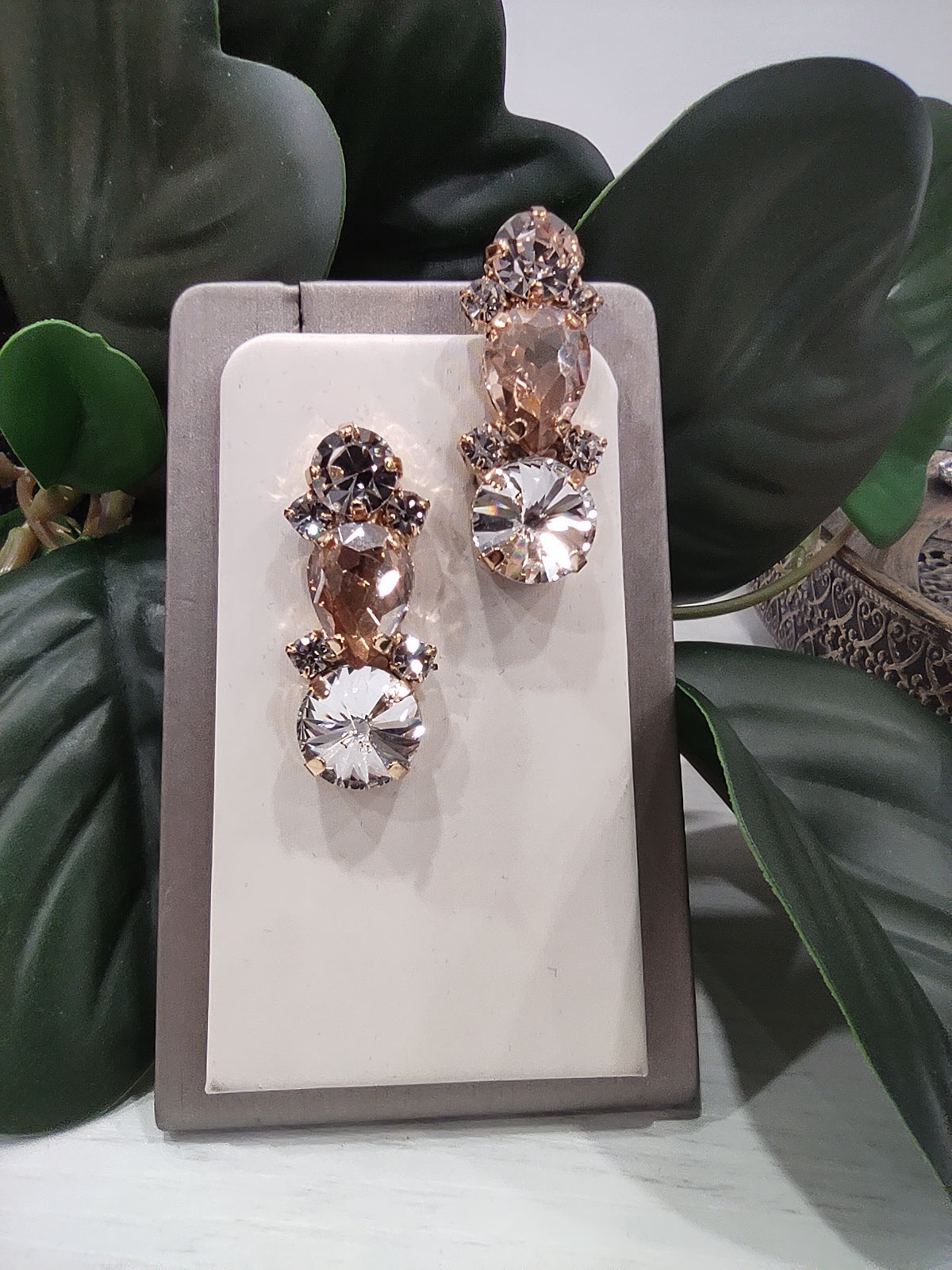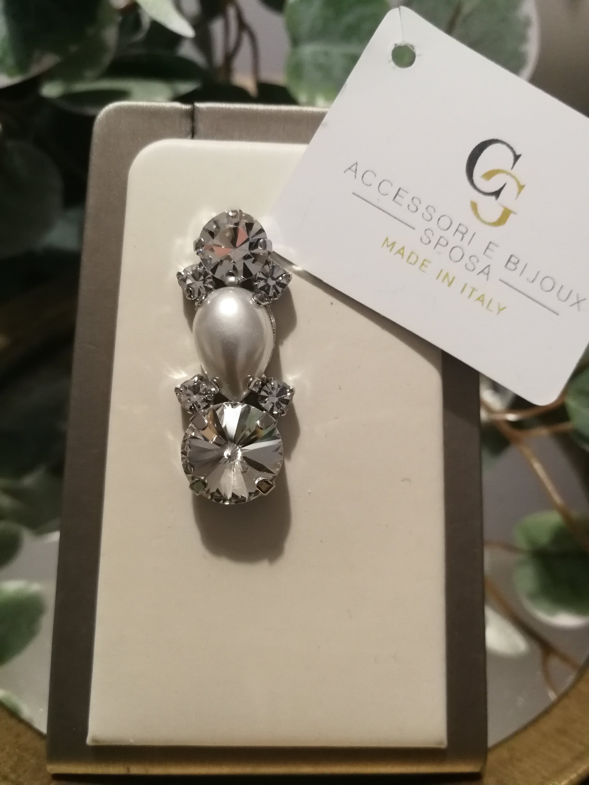 Orecchini realizzati in ottone placcato oro o argento con lega in stagno, arricchiti da strass e pietre Swarovski, galvanica nickel free.
