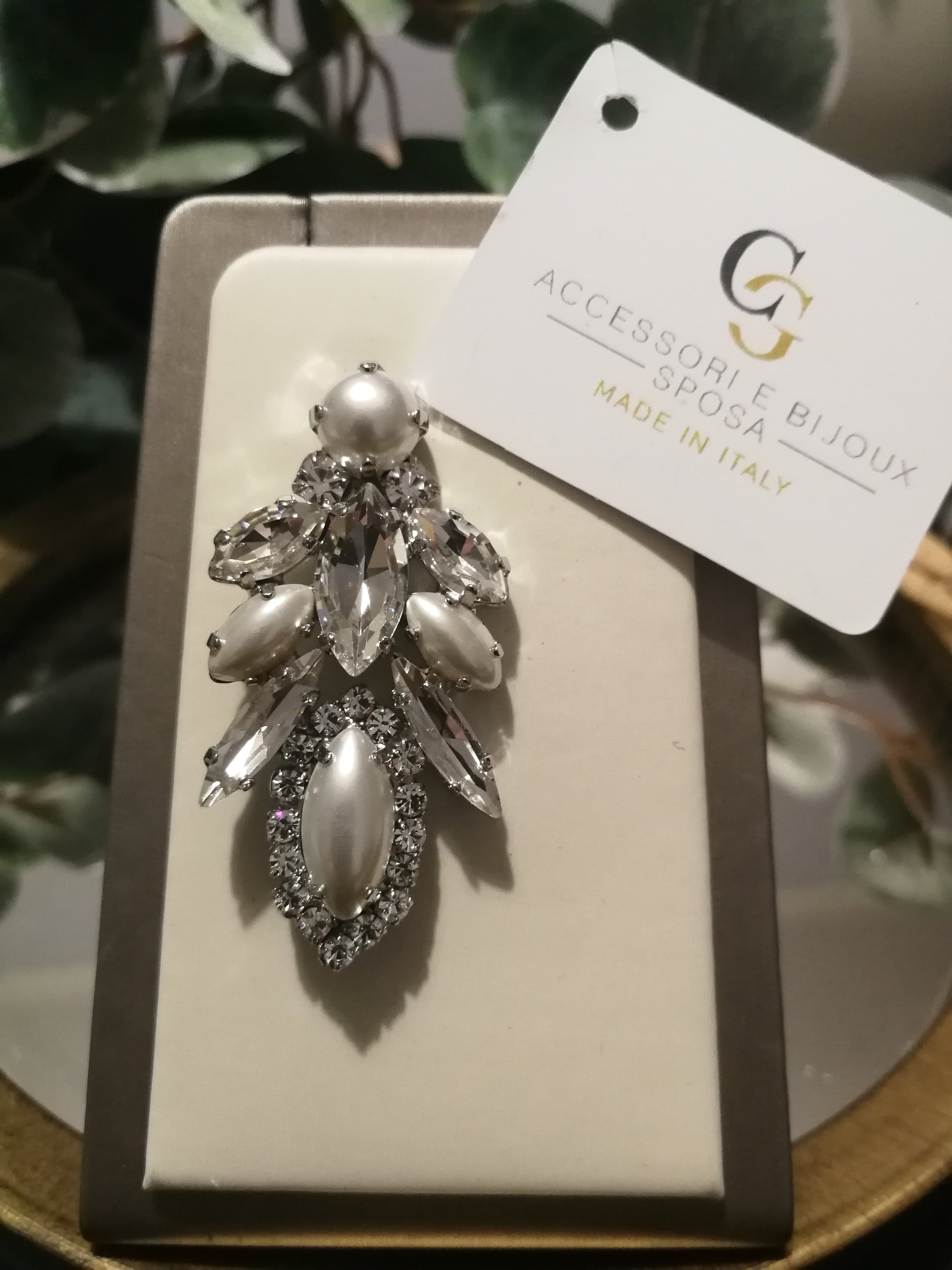 Orecchini realizzati in ottone placcato oro o argento con lega in stagno, arricchiti da strass e pietre Swarovski e perle, galvanica nickel free.