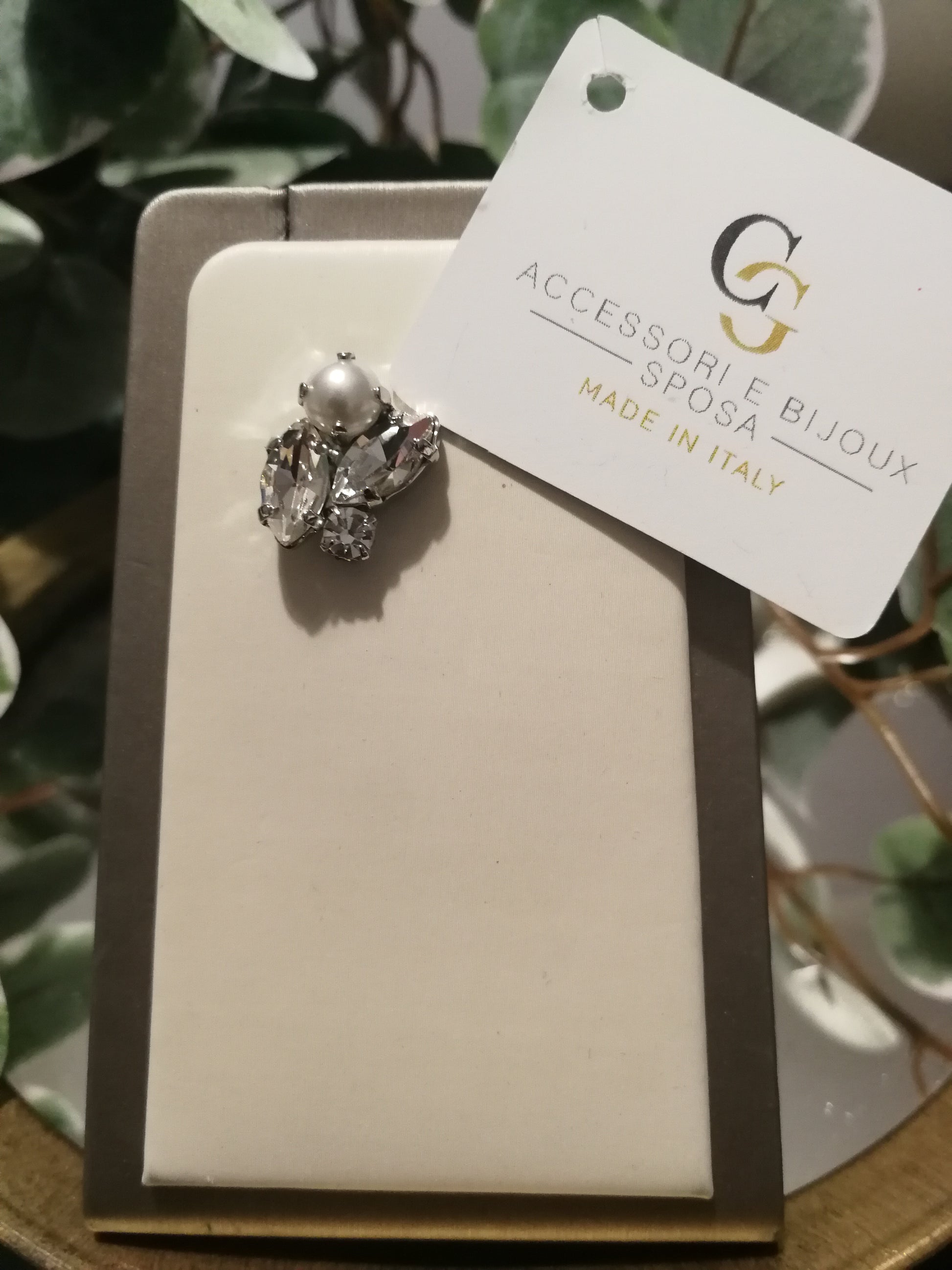Orecchini realizzati in ottone placcato oro o argento con lega in stagno, arricchiti da strass e pietre Swarovski e perle, galvanica nickel free.