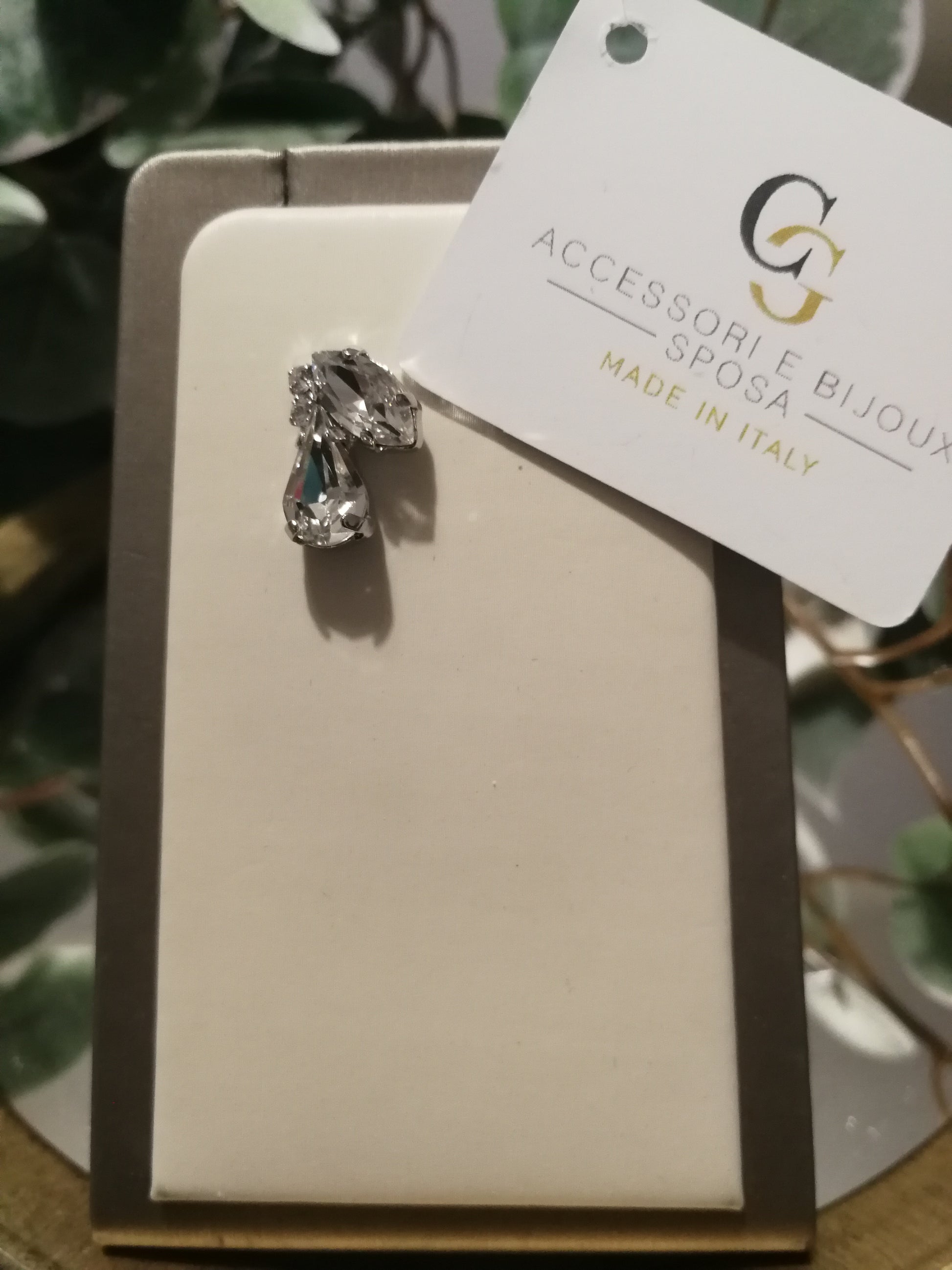 Orecchini realizzati in ottone placcato oro o argento con lega in stagno, arricchiti da strass e pietre Swarovski, galvanica nickel free.