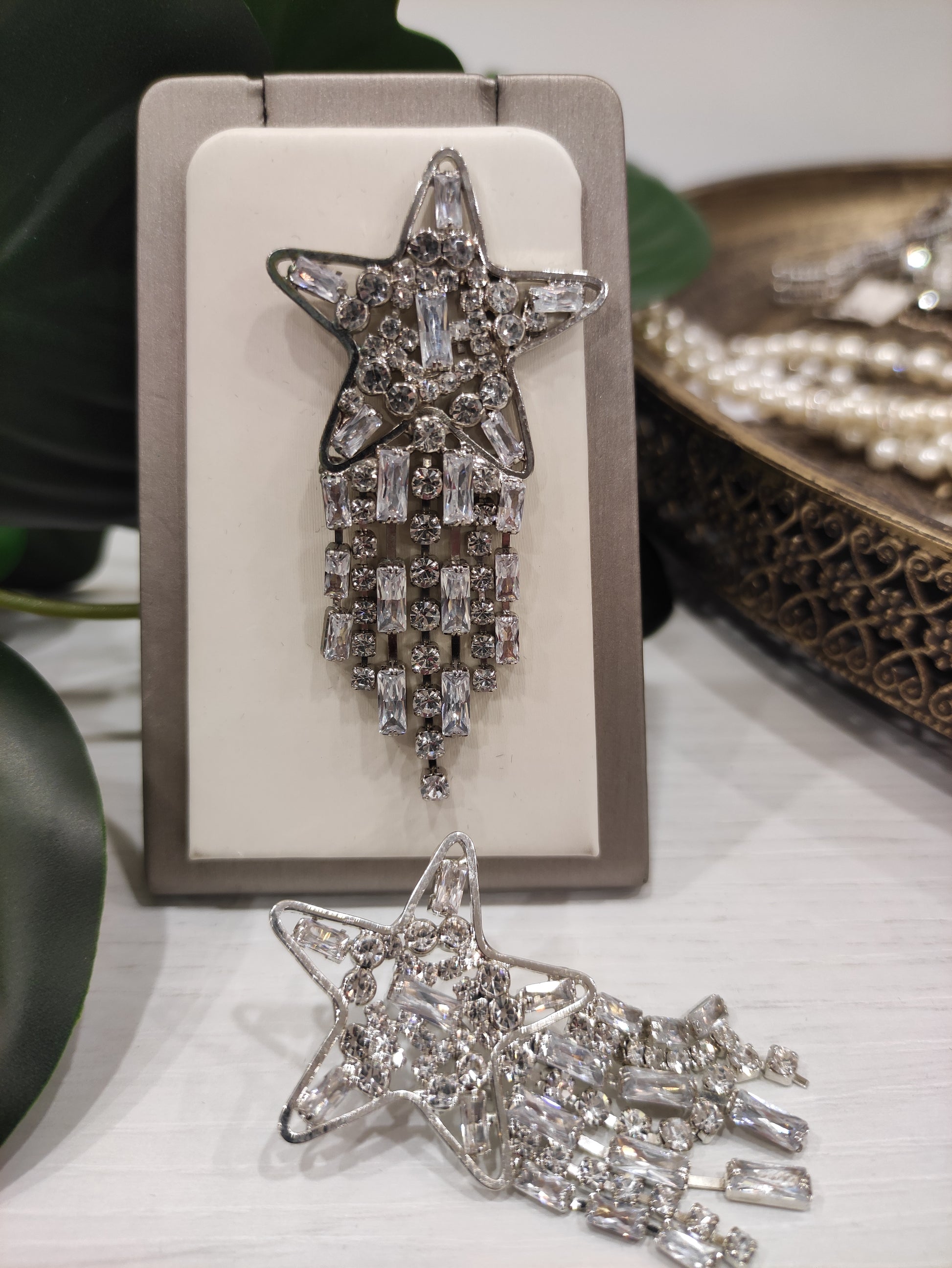 Orecchini chandelier realizzati in ottone placcato oro o argento con lega in stagno, impreziositi da strass e pietre Swarovski, galvanica nickel free.