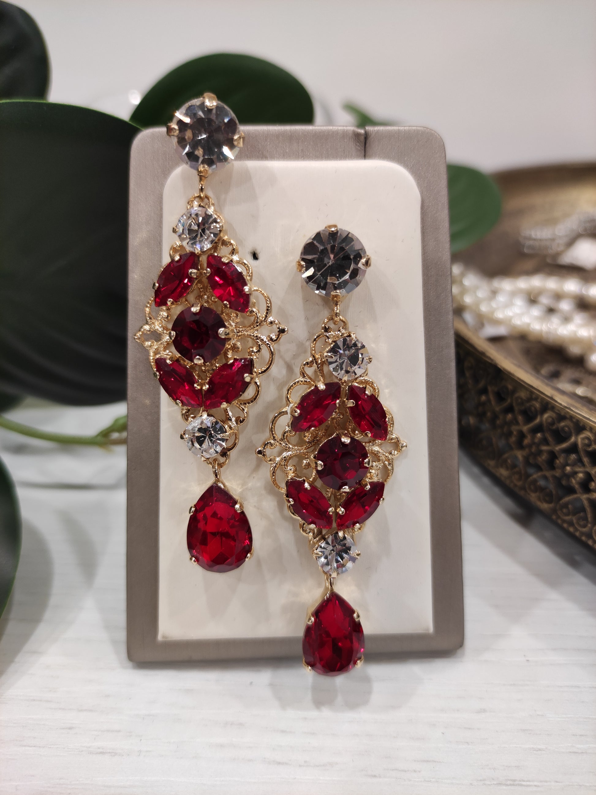 Orecchini pendenti realizzati in ottone placcato oro o argento con lega in stagno, arricchiti da strass e pietre castonate Swarovski, galvanica nickel free.