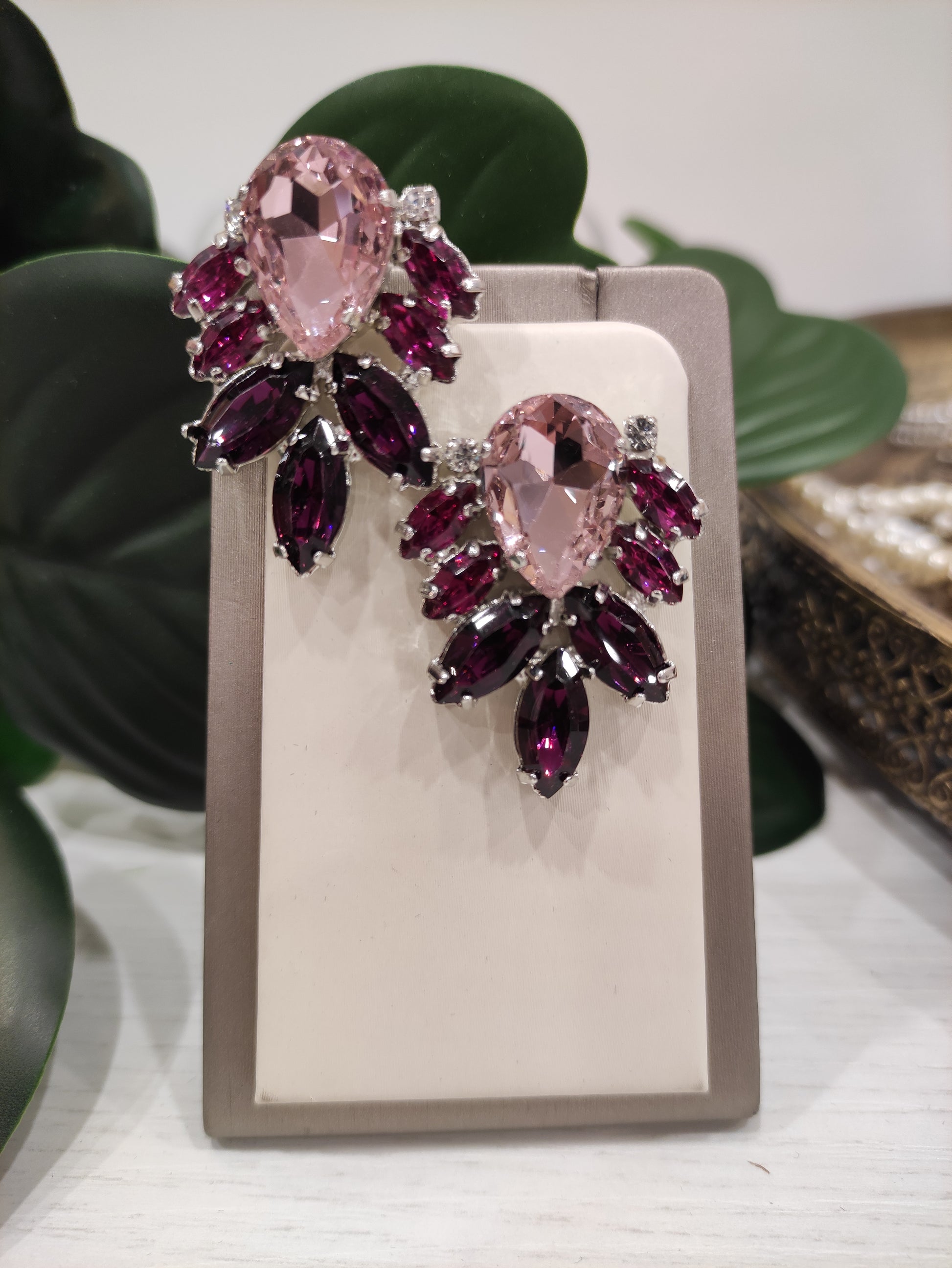 Orecchini realizzati in ottone placcato oro o argento con lega in stagno, impreziositi da strass e pietre Swarovski, galvanica nickel free.