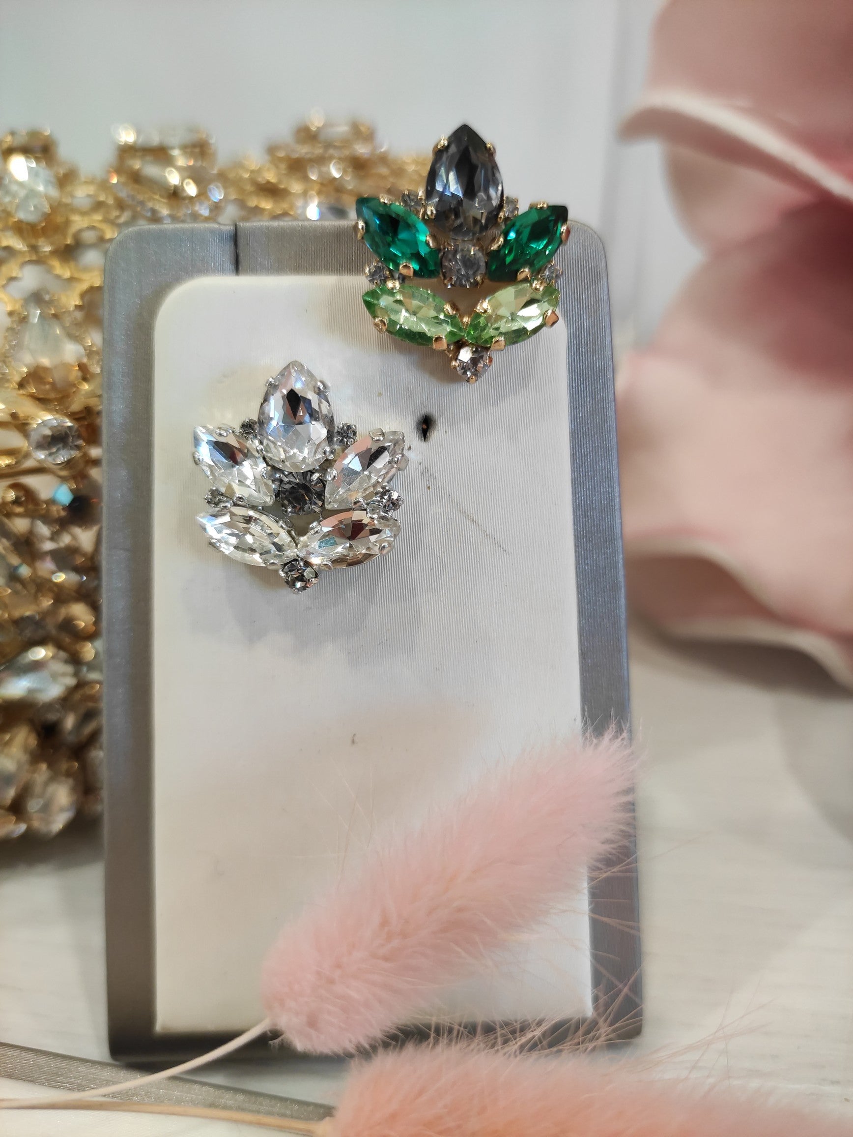 Orecchini realizzati in ottone placcato oro o argento con lega in stagno, arricchiti da strass e pietre Swarovski, galvanica nickel free.