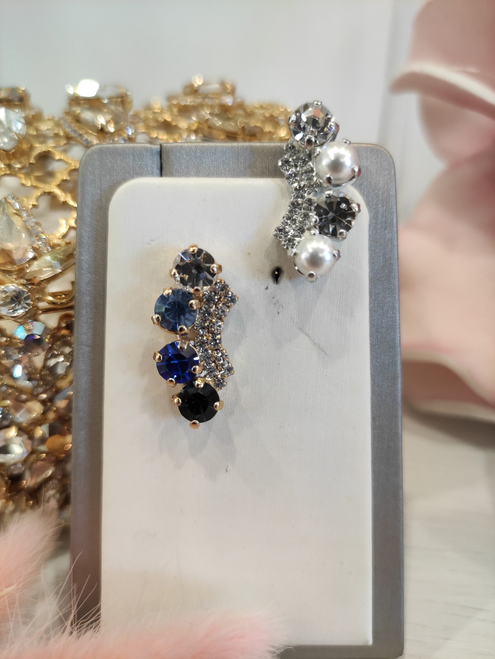 Orecchini realizzati in ottone placcato oro o argento con lega in stagno, arricchiti da strass Swarovski, galvanica nickel free.