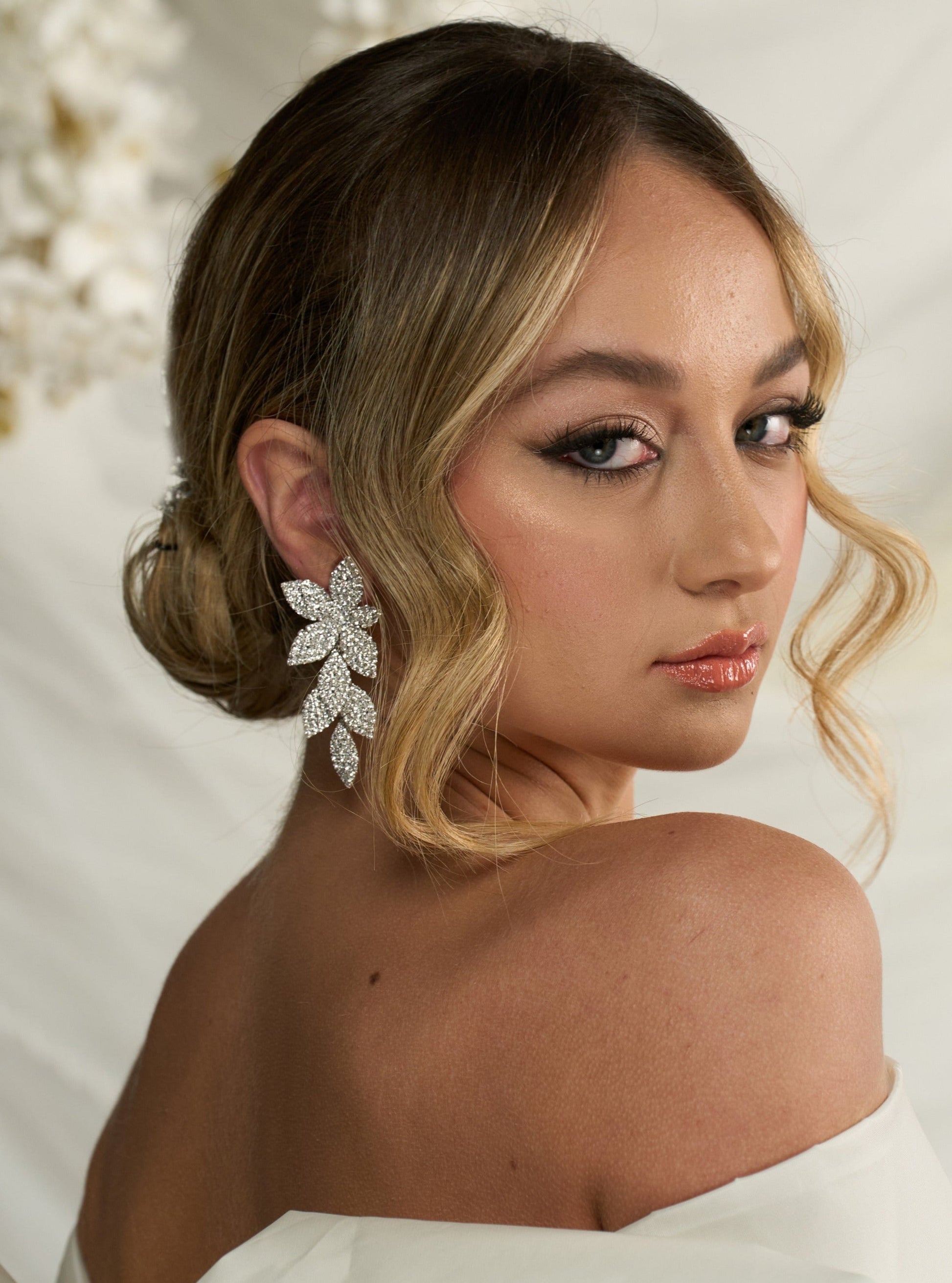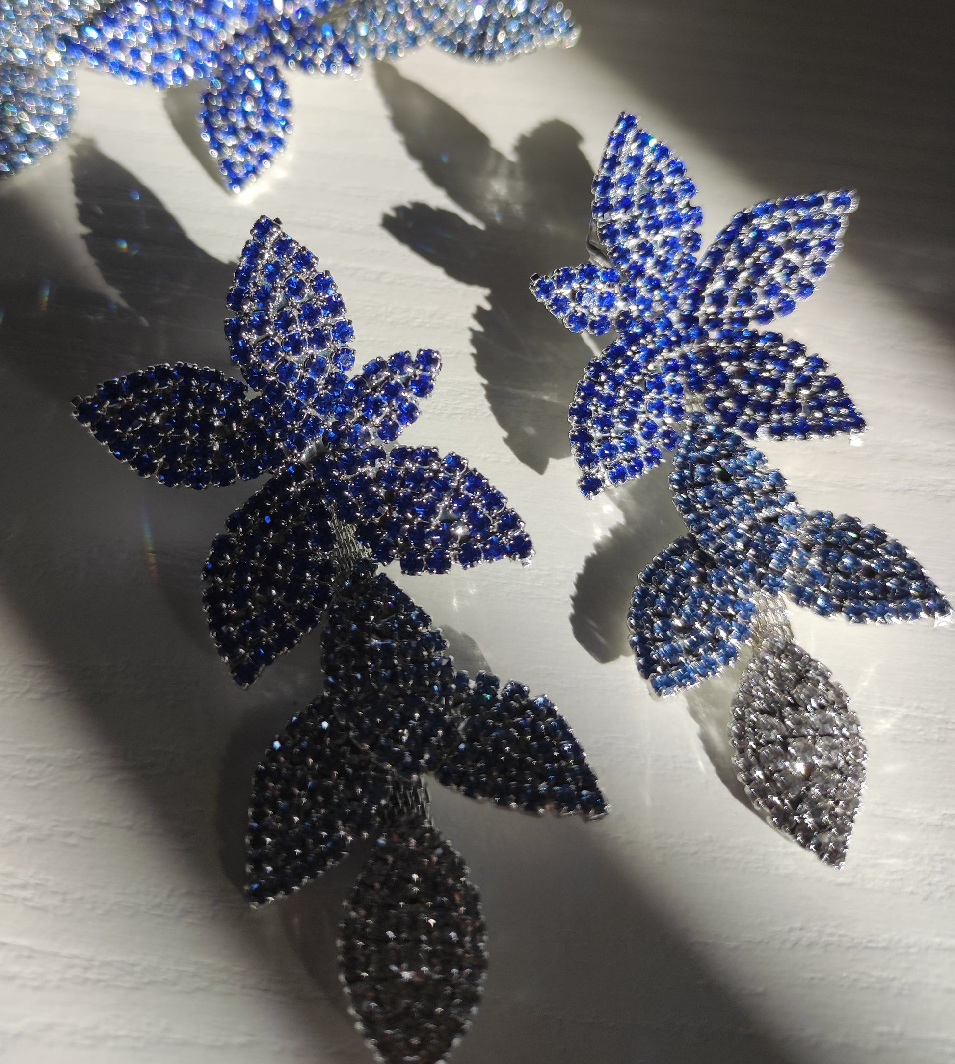 Orecchini fiore strass con pendente, con strass swarovski, fatto a mano, made in italy, personalizzabile, in vari colori e con degradè.