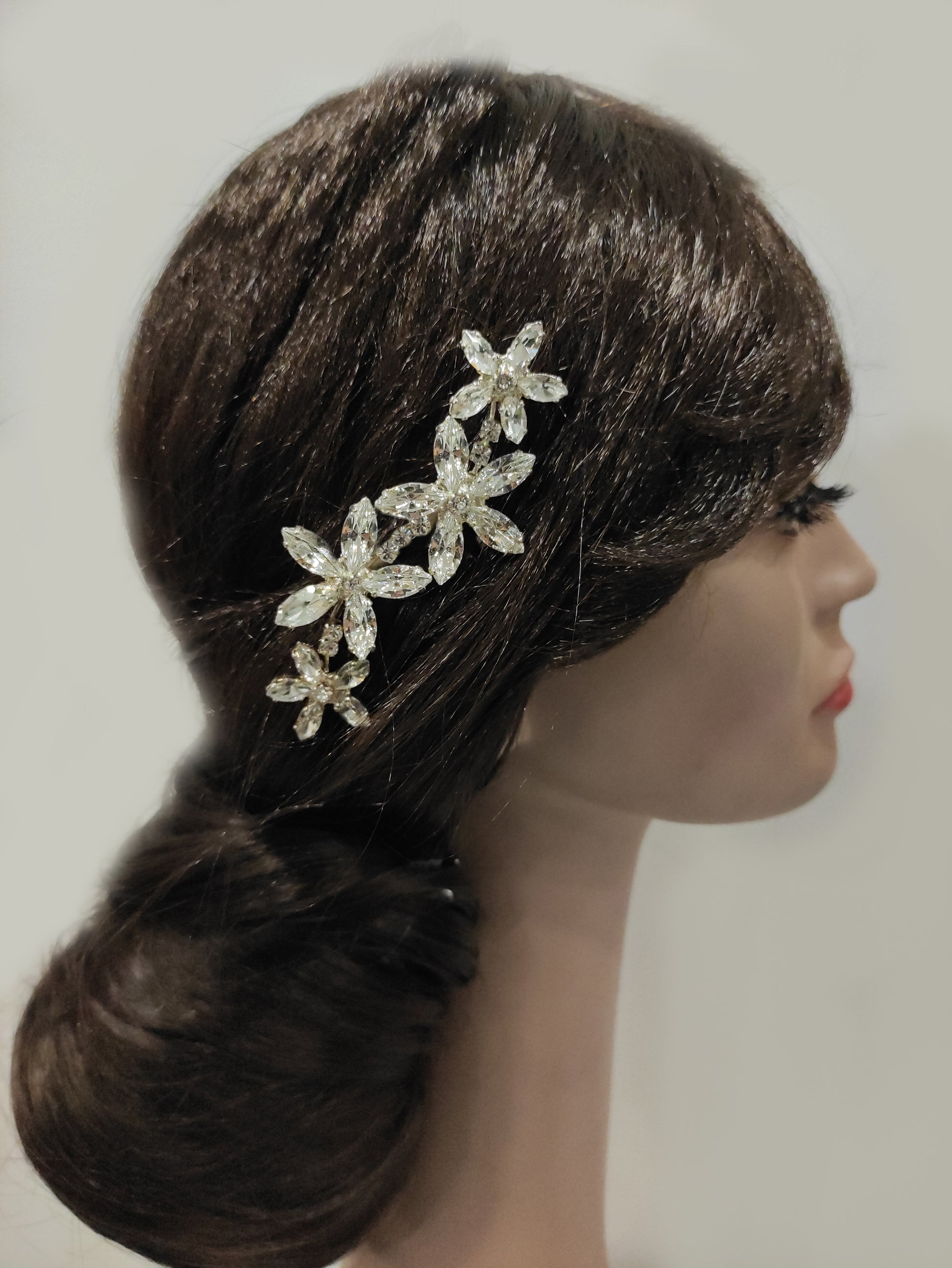 Pettinino bijoux da sposa, con fiori in pietre castonate swarovski, fatto a mano, made in italy, personalizzabile, possibilità di realizzarlo anche in altri colori.