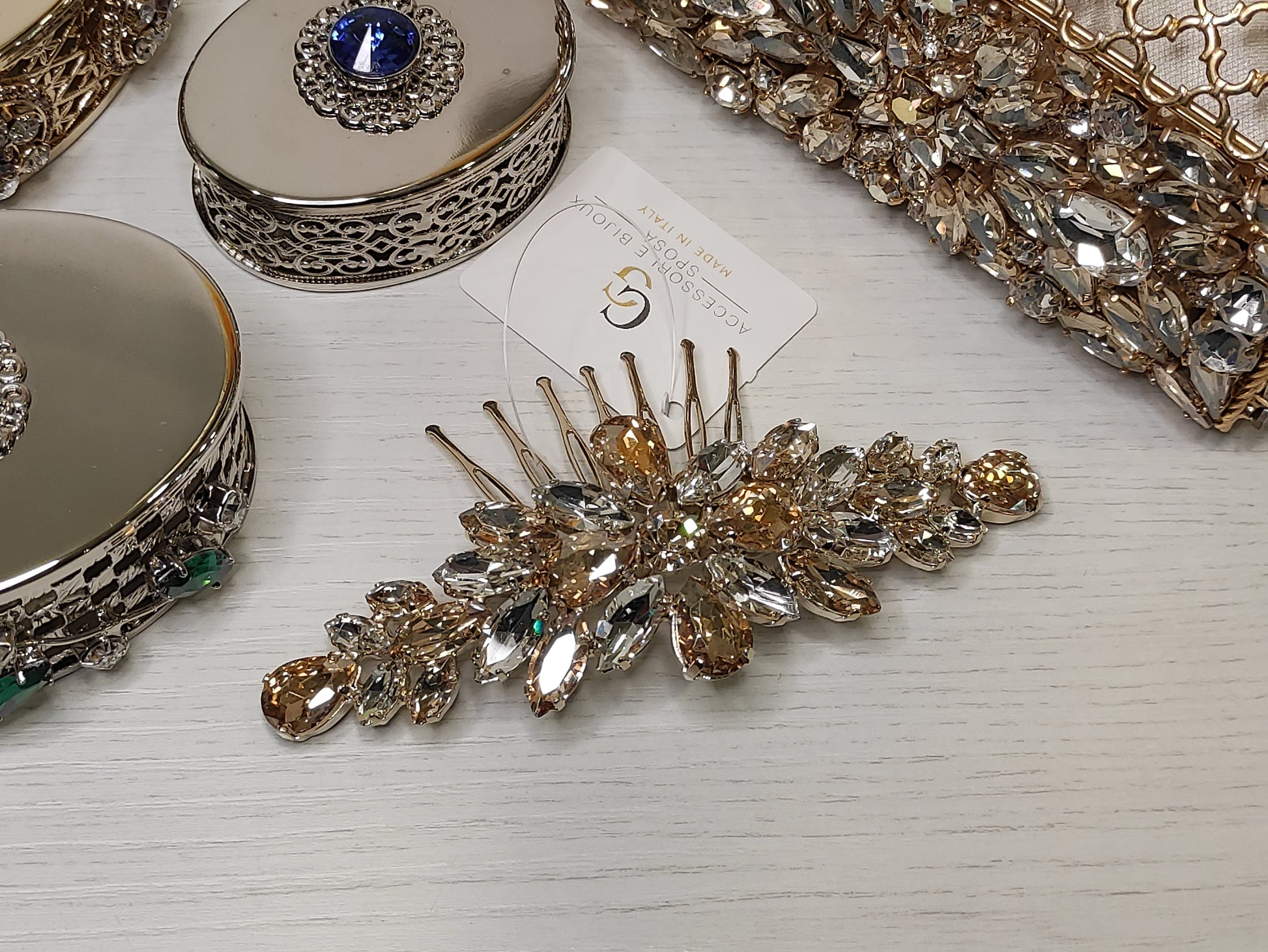 Pettinino bijoux da sposa, con pietre swarovski, fatto a mano, made in italy, personalizzabile.