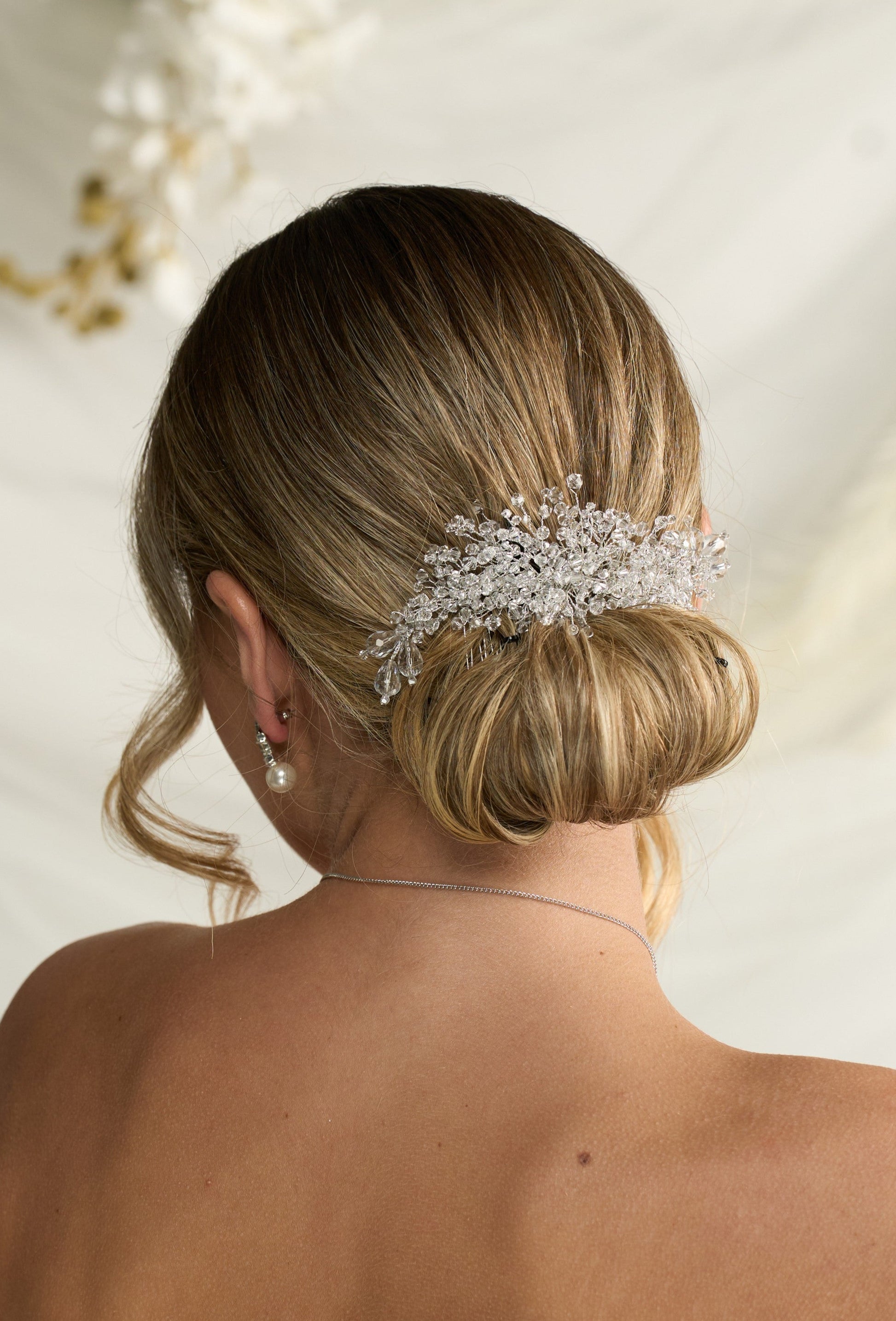 Pettine bijoux da sposa, lavorazione con pistilli in cristalli swarovski, fatto a mano, made in Italy, personalizzabile.