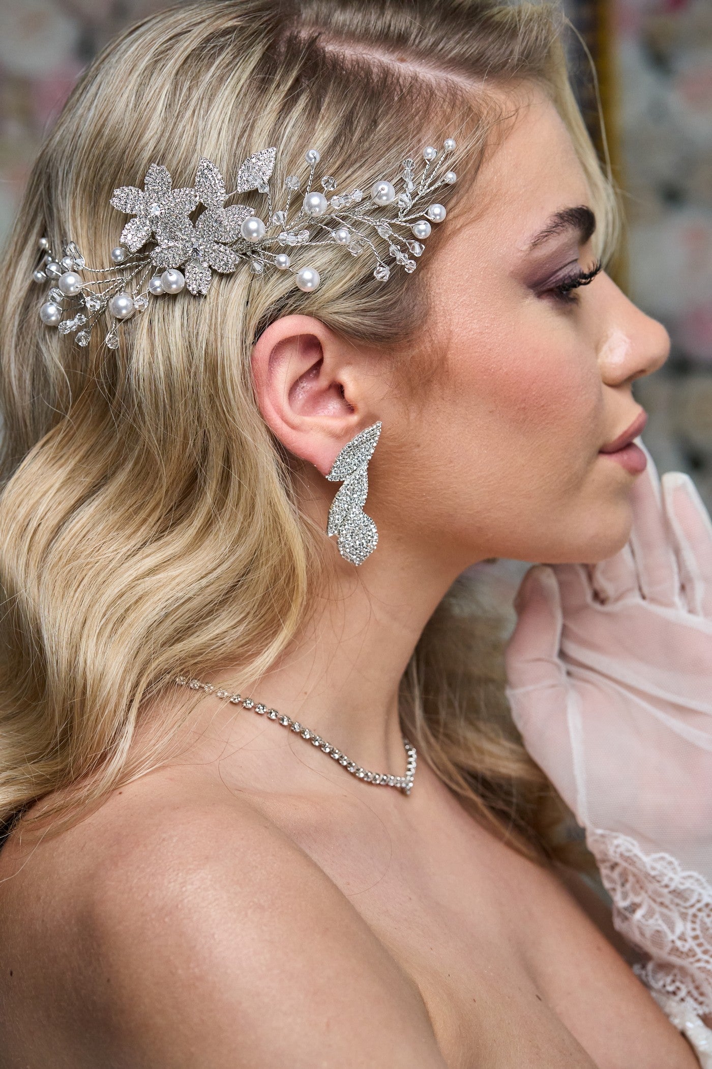 Pettinino bijoux da sposa, con perle, cristalli e strass swarovski, fatto a mano, made in italy, personalizzabile.