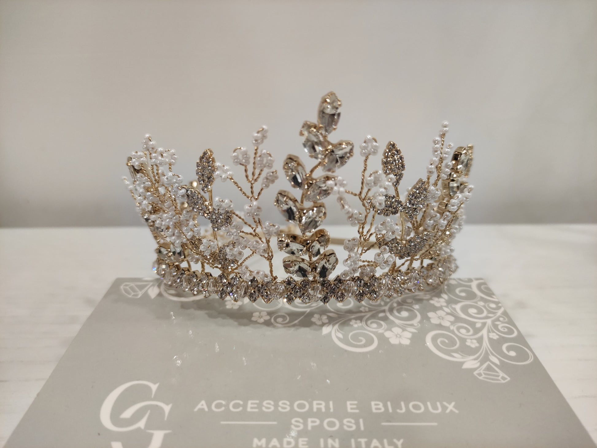 Corona bijoux con lavorazione in strass, cristalli e pietre castonate swaorvski, fatto a mano, made in italy, personalizzabile.