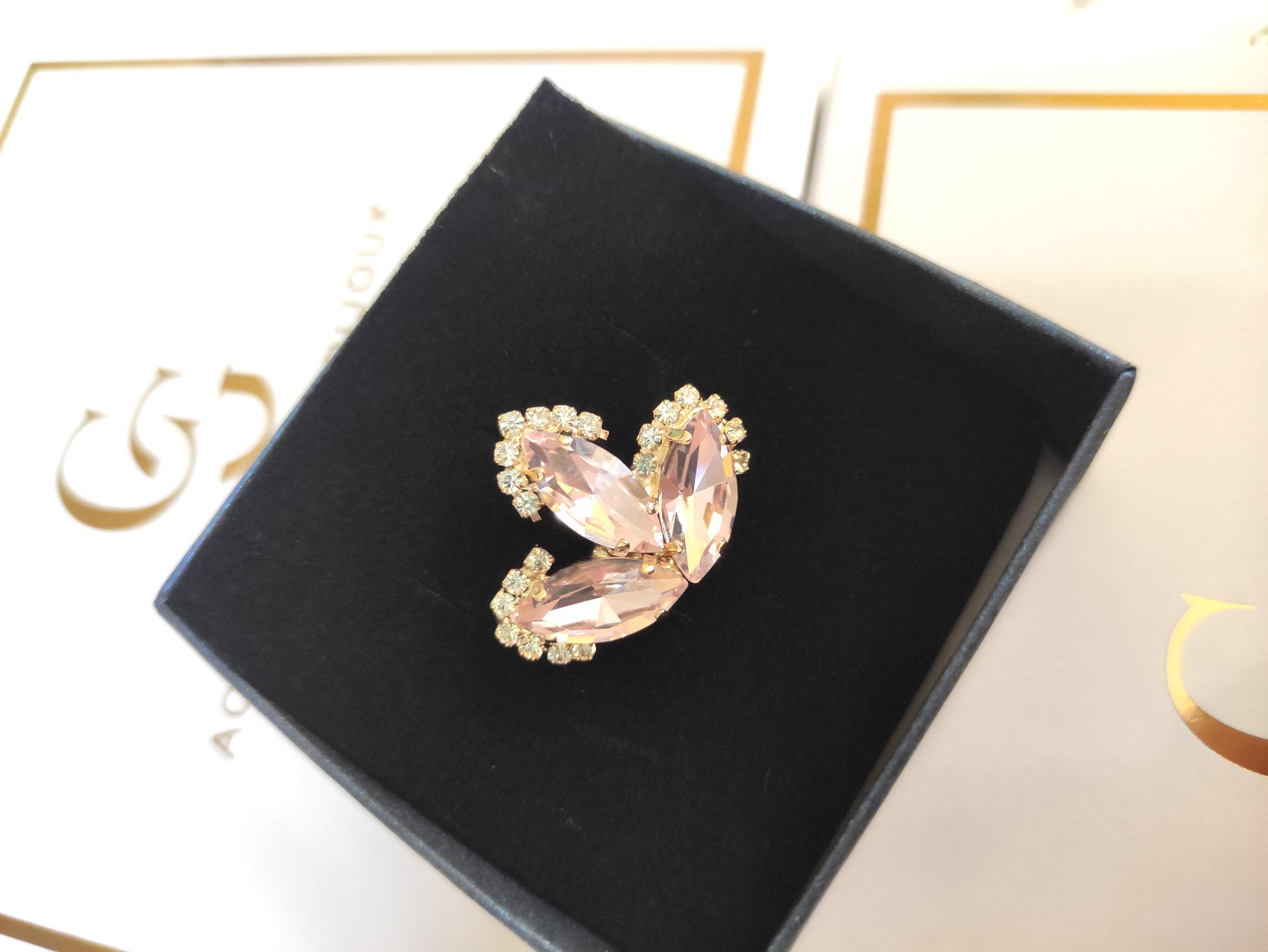 Anello bijoux, con 3 pietre taglio navetta, realizzato a mano con materiali Swarovski e Preciosa, saldato a stagno e galvanizzato nichel free.