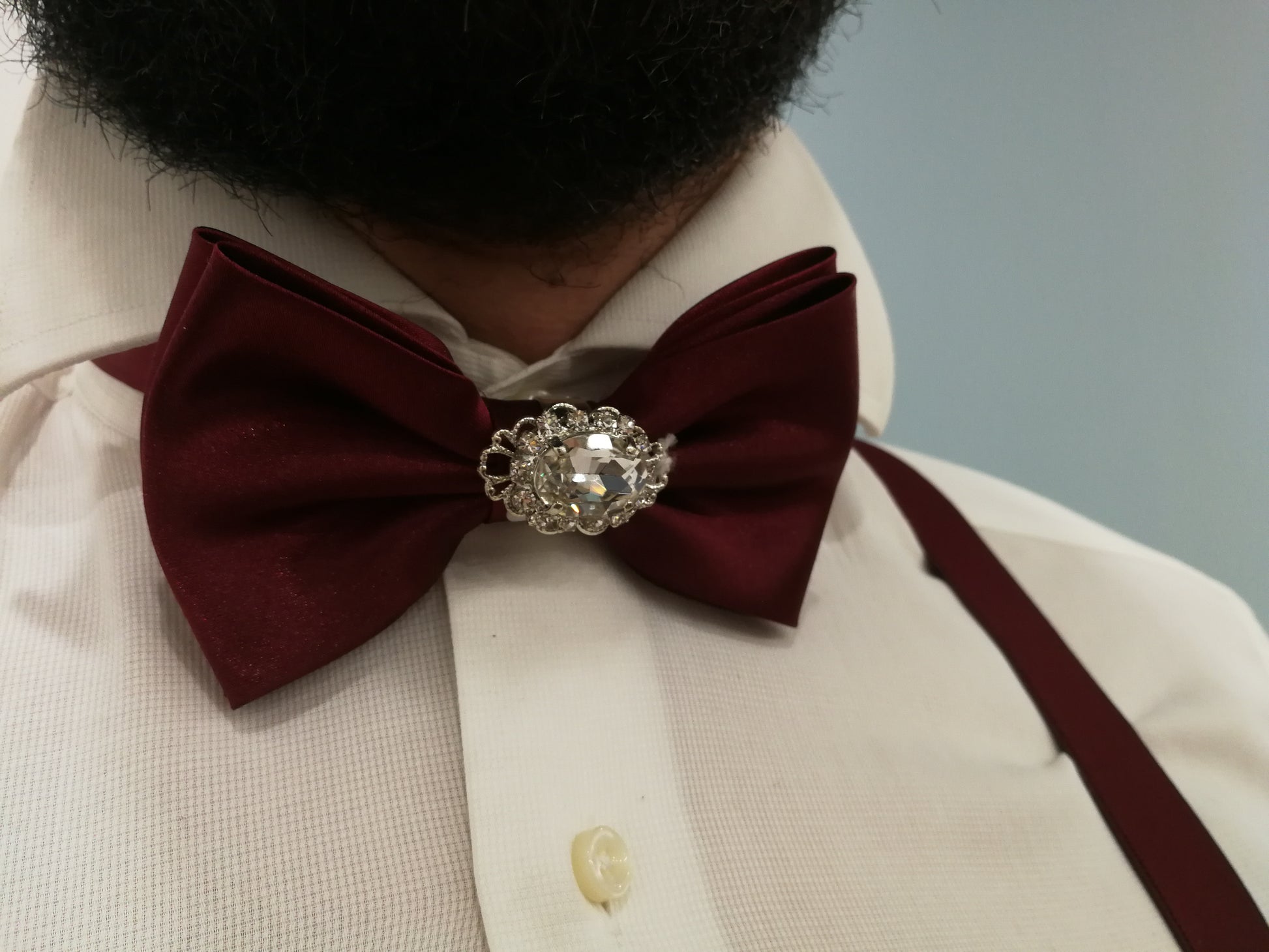 Apertura semplice, per posizionarlo alla base de nodo del plastron o al centro del papillon.