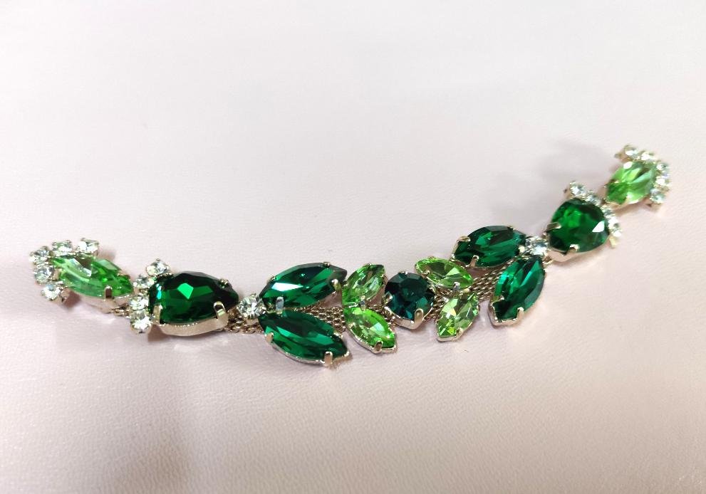 Accessorio bijoux, da applicare su cinture in tessuto. Lavorazione con pietre e strass Swarovski e Preciosa, con lega in stagno e galvanica nichel free.