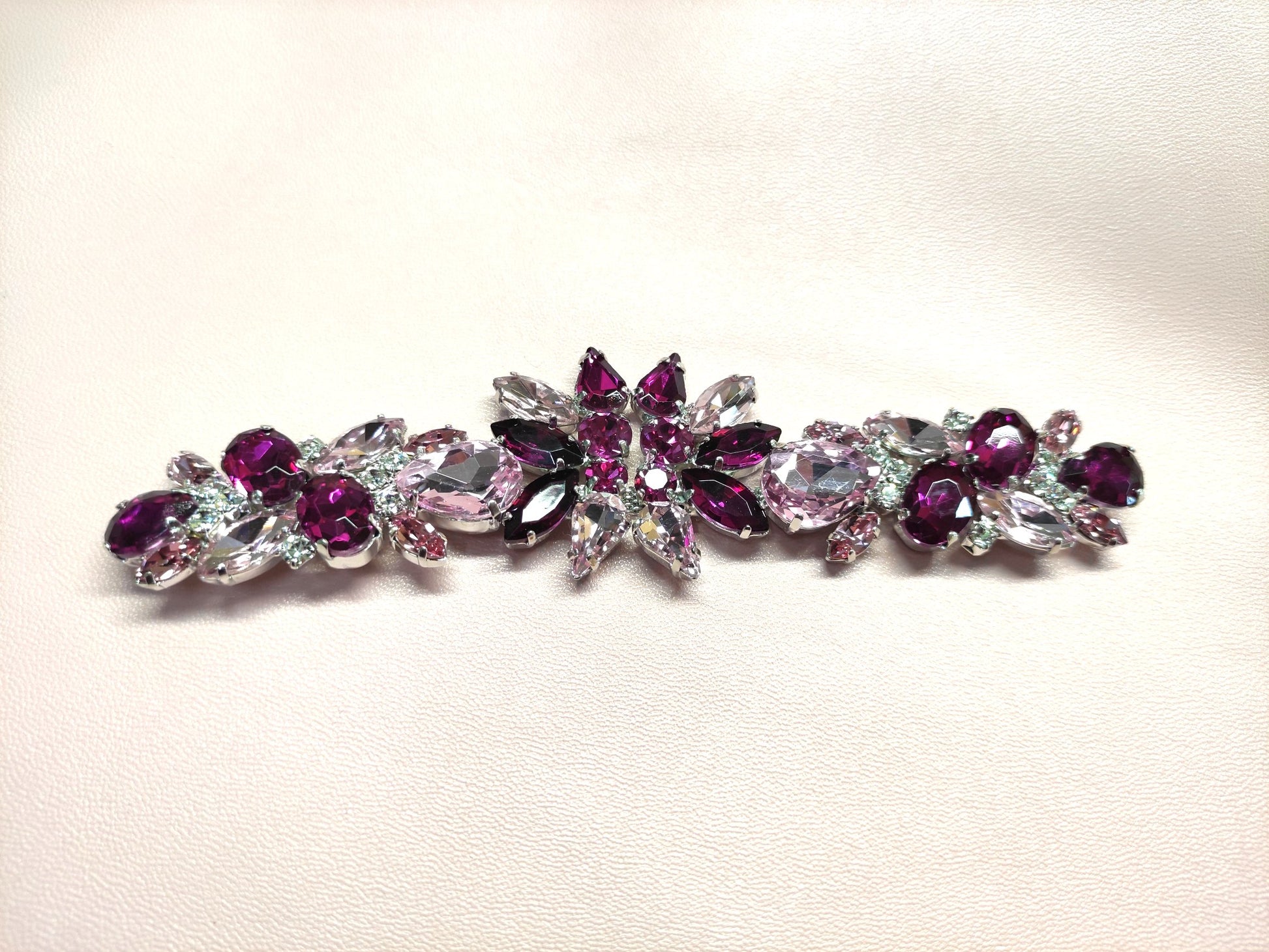 Accessorio bijoux, da applicare su cinture in tessuto. Lavorazione con pietre e strass Swarovski e Preciosa, con lega in stagno e galvanica nichel free.