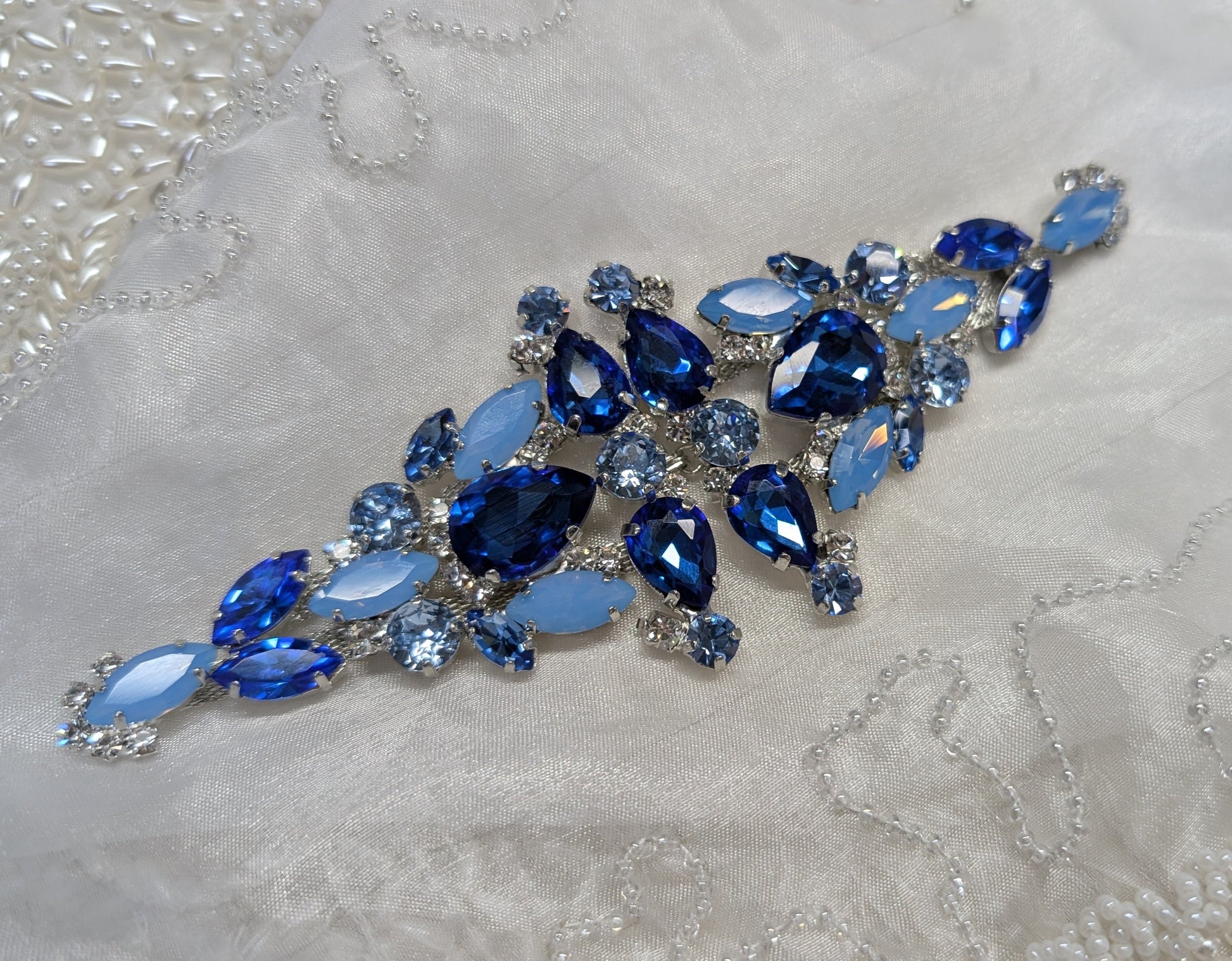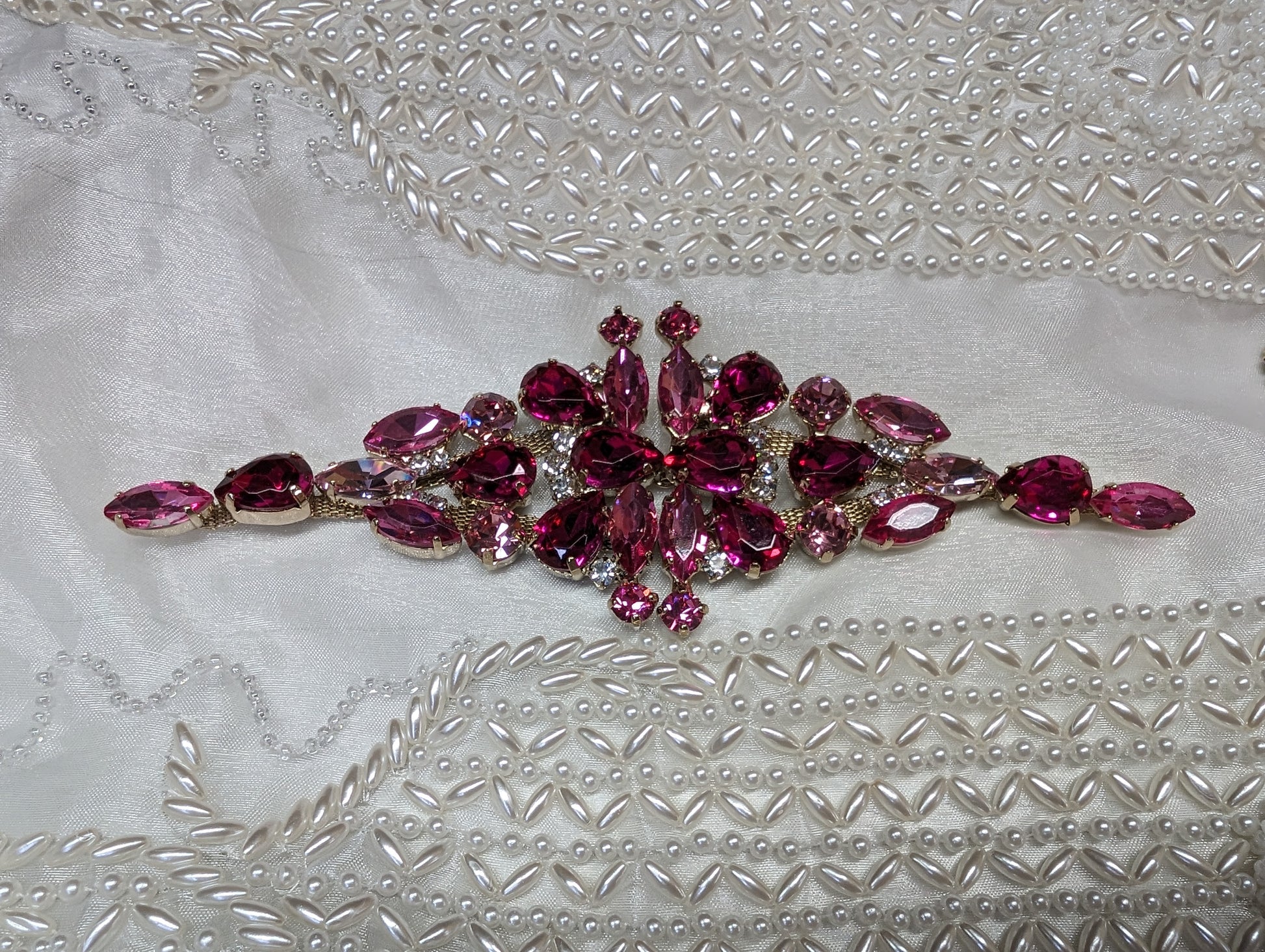 Accessorio bijoux, da applicare su cinture in tessuto. Lavorazione con pietre e strass Swarovski e Preciosa, con lega in stagno e galvanica nichel free.