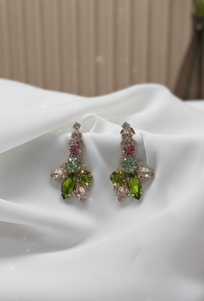 Orecchini realizzati in ottone placcato oro o argento con lega in stagno, arricchiti da strass e pietre Swarovski, galvanica nickel free.