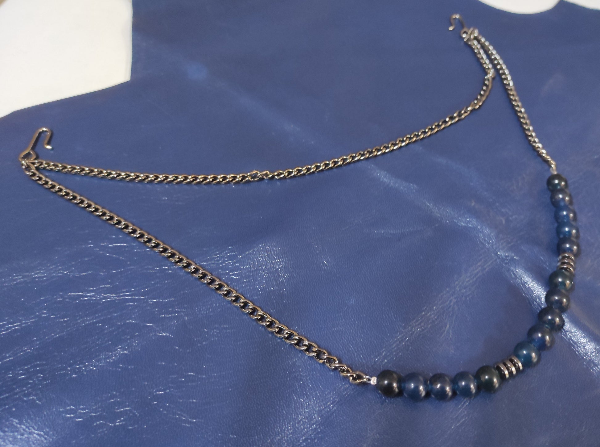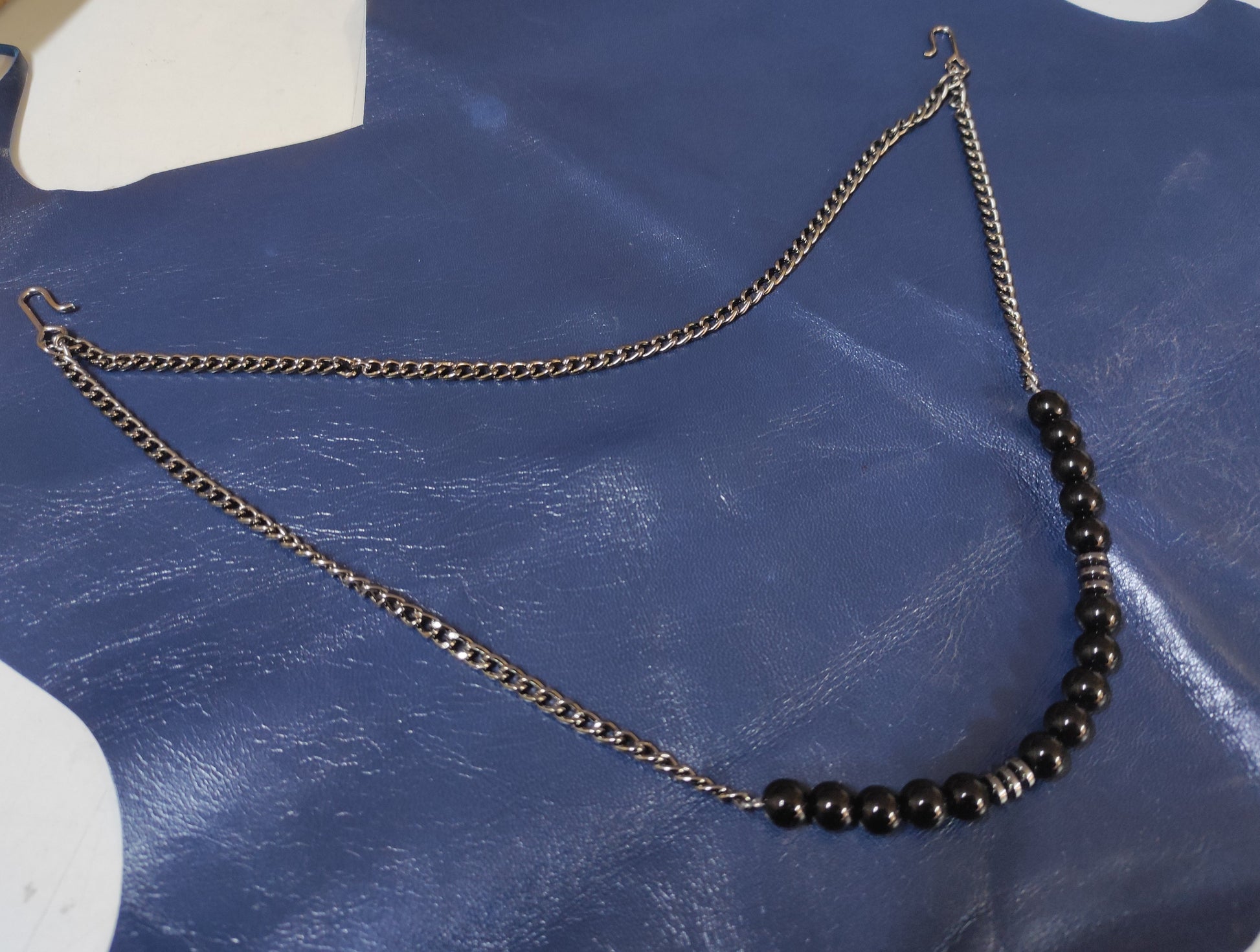 Doppia catena da gilet con perle bijoux ed elementi in ematite, realizzata a mano con lega in stagno e galvanica nichel free.