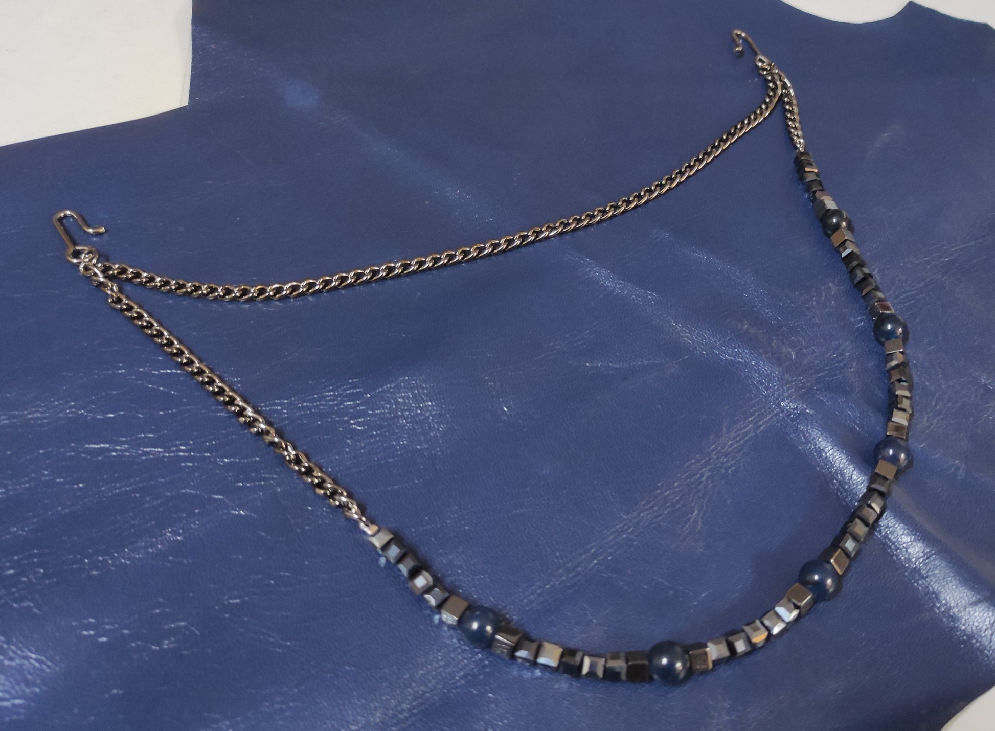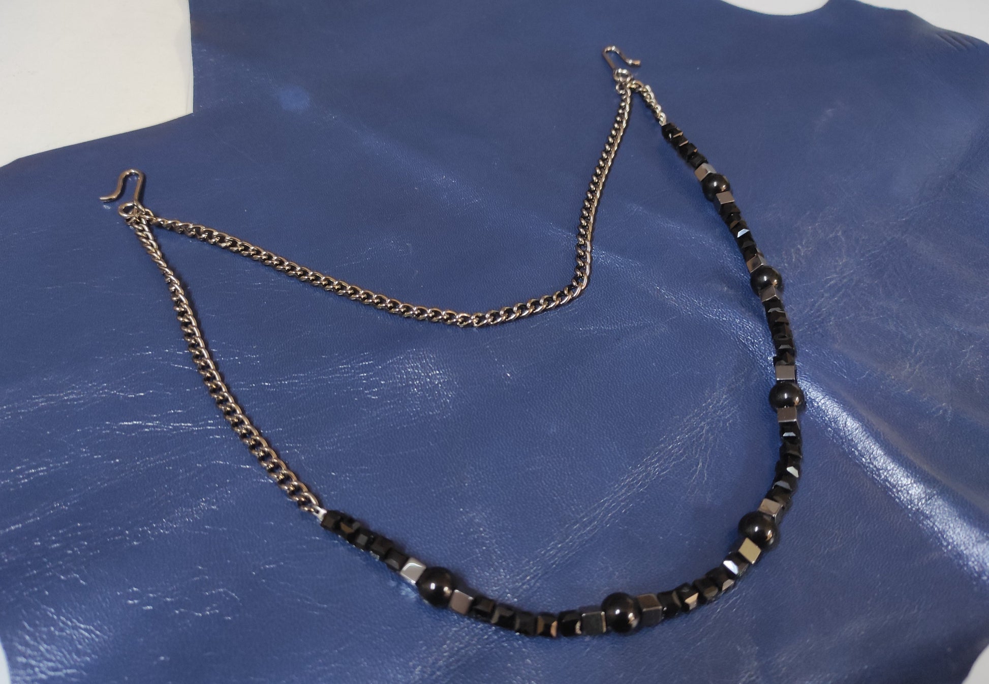 Doppia catena da gilet con cubi di ematite e perle bijoux, realizzata a mano con lega in stagno e galvanica nichel free.