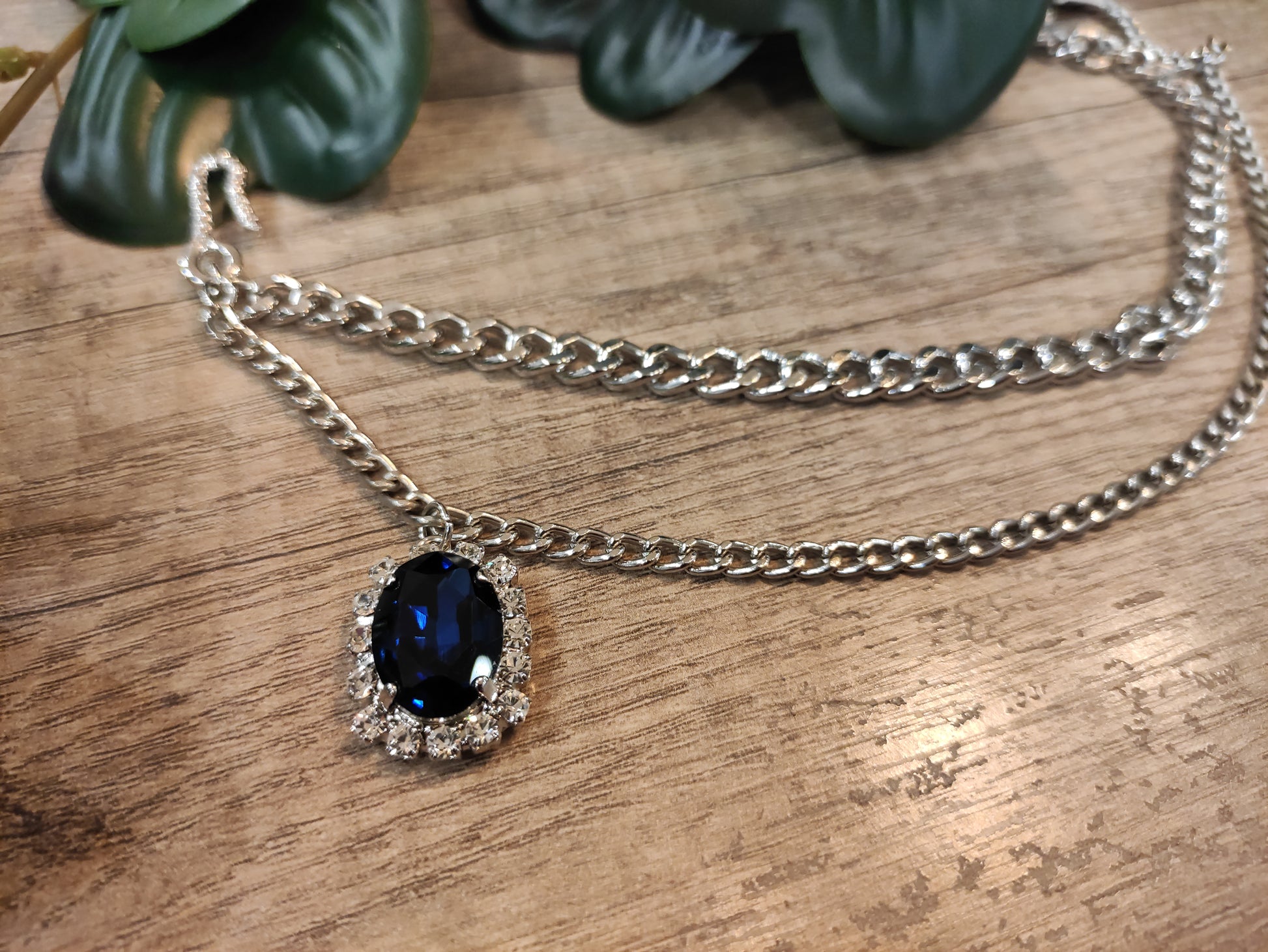 Doppia catena da gilet con applicazione bijoux con pietra castonata taglio ovale e strass swarovski, realizzata a mano con lega in stagno e galvanica nichel free.