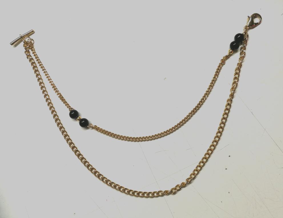 Doppia catena da gilet con perle bijoux, realizzata a mano con lega in stagno e galvanica nichel free.