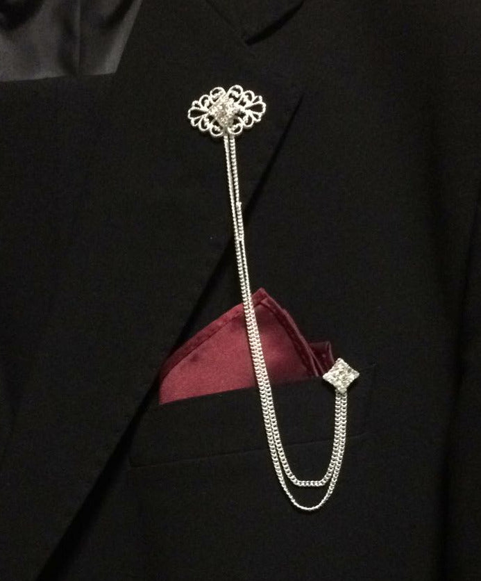 Lunghezza catena circa 20cm ideale per fissaggio all'asola del bavero della giacca al taschino!