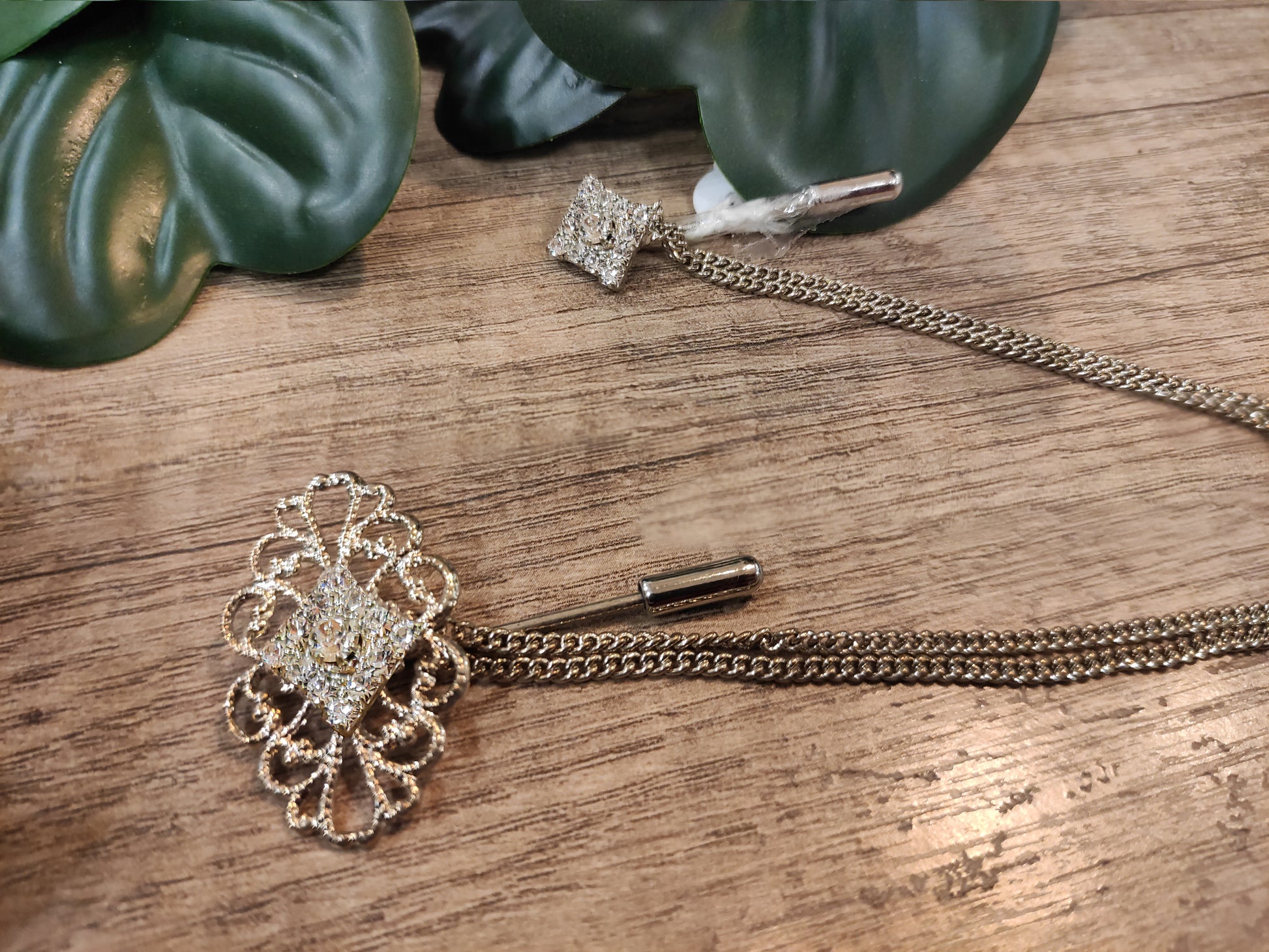 Catenina da taschino con applicazione bijoux in strass, realizzata a mano con lega in stagno e galvanica nichel free. Made in Italy personalizzabile