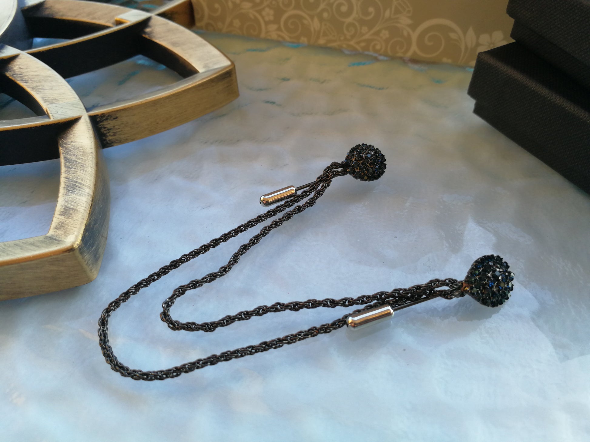 Catenina da taschino con applicazione bijoux in strass, realizzata a mano con lega in stagno e galvanica nichel free. Made in Italy personalizzabile