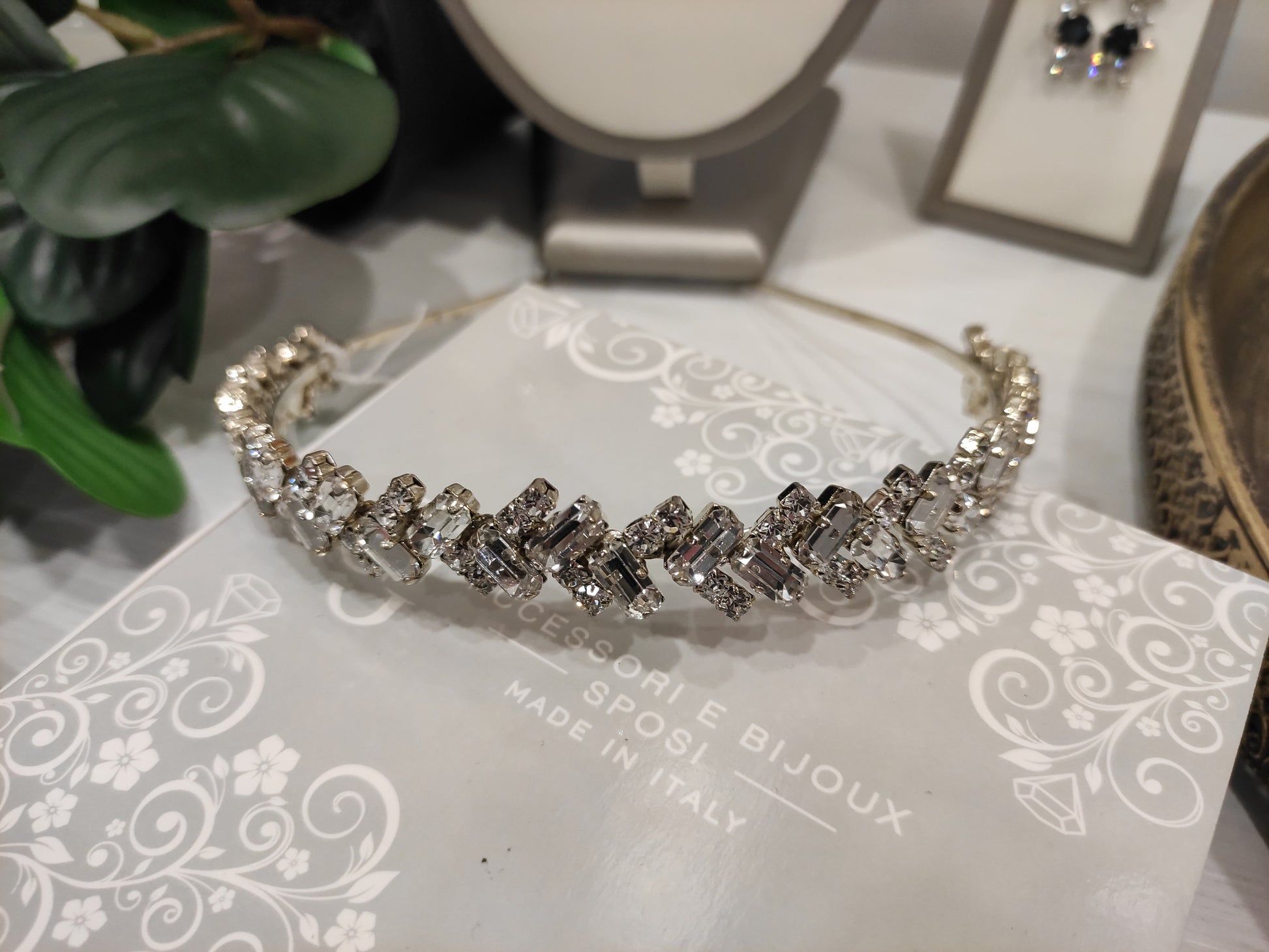 Cerchietto bijoux con lavorazione di strass e pietre castonate Swaorvski o Preciosa, fatto a mano, made in italy, personalizzabile.