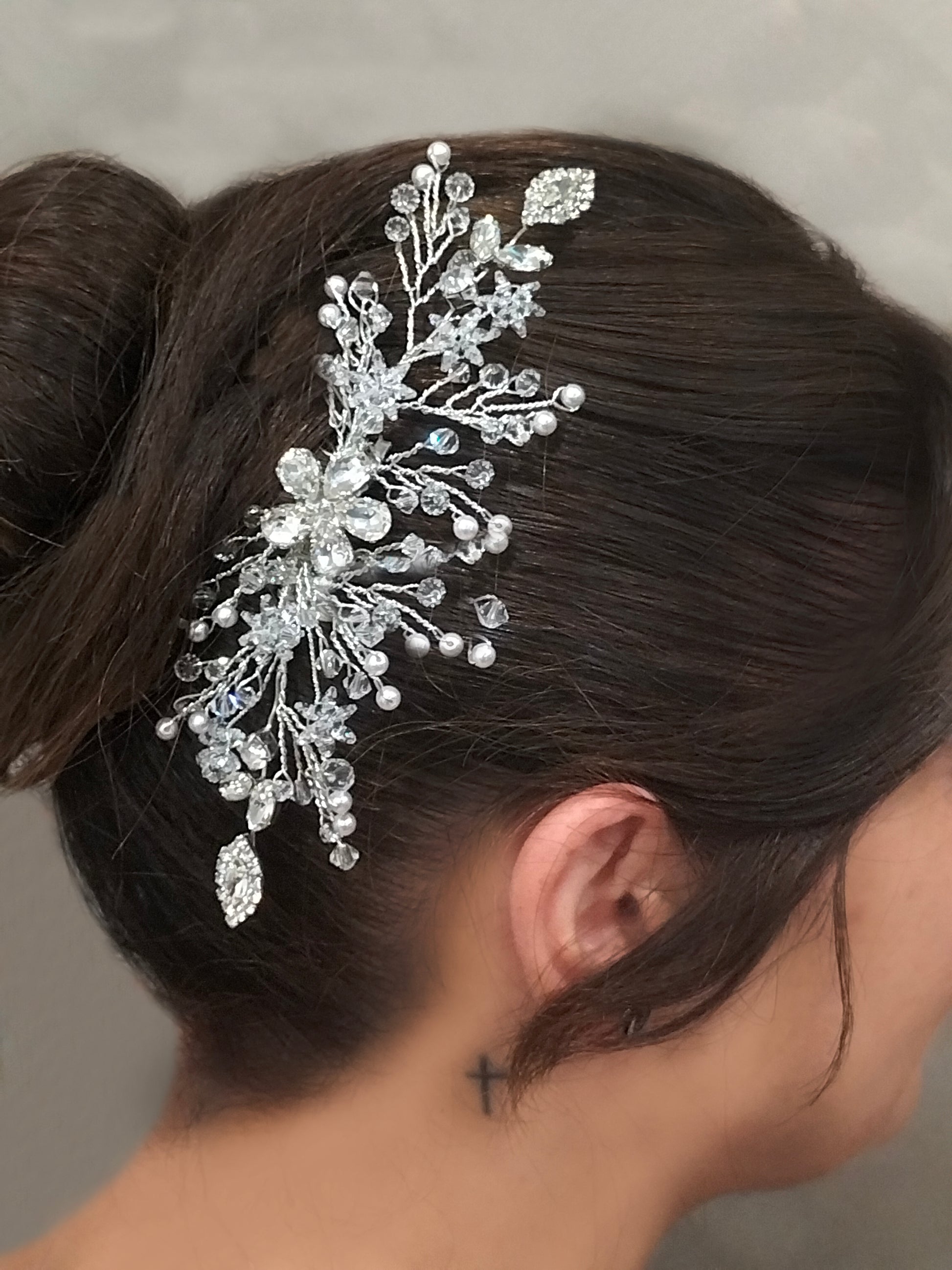 Pettine bijoux da sposa, lavorazione con perline,cristalli e pietre strass swarovski, fatto a mano, made in Italy, personalizzabile.