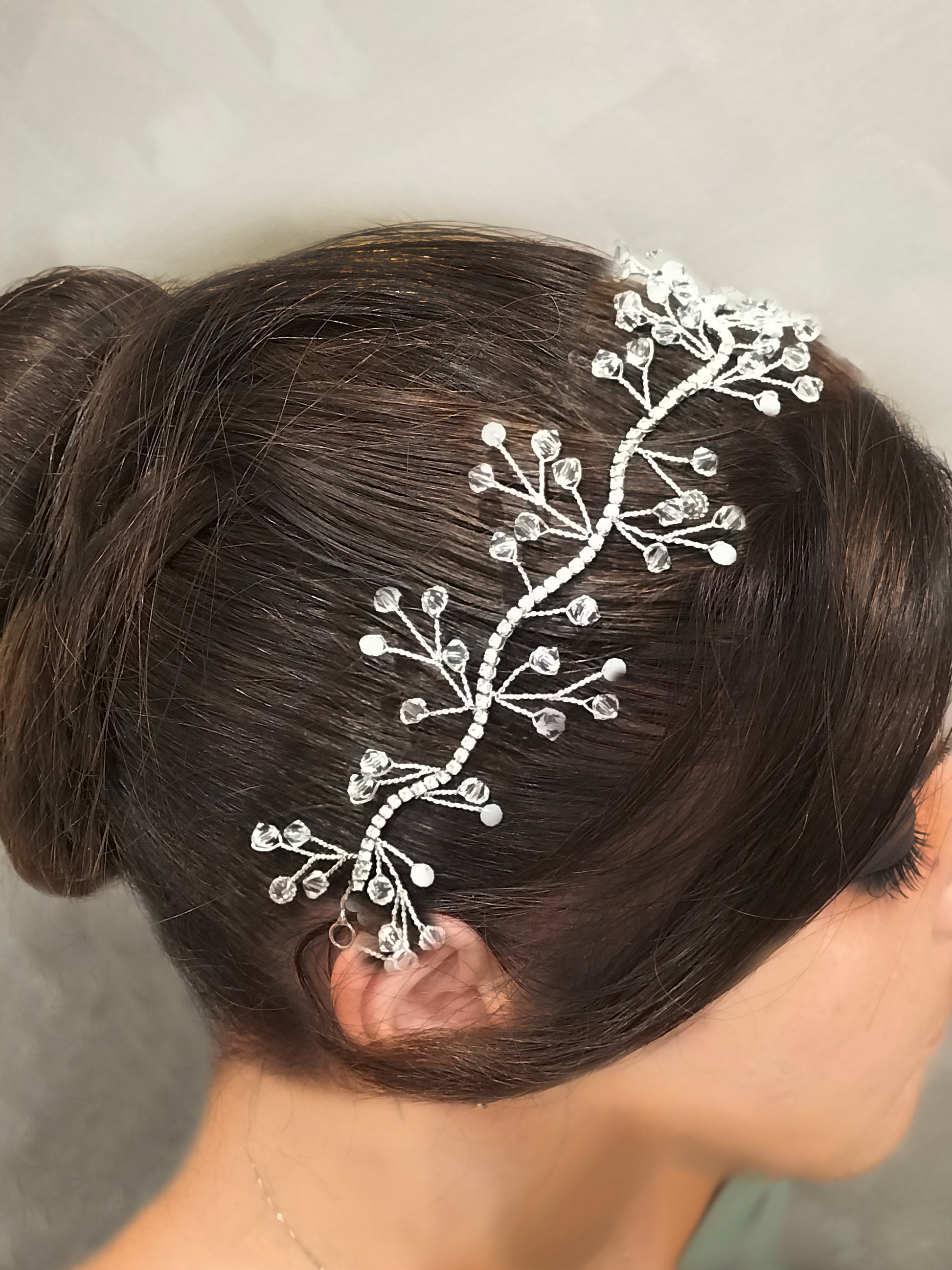 Filo modellabile bijoux da sposa, lavorazione pistilli in cristalli e perline,anima centrale in strass swarovski, fatto a mano, made in Italy, lungo circa 25cm, con anellini finali per il fissaggio, personalizzabile.