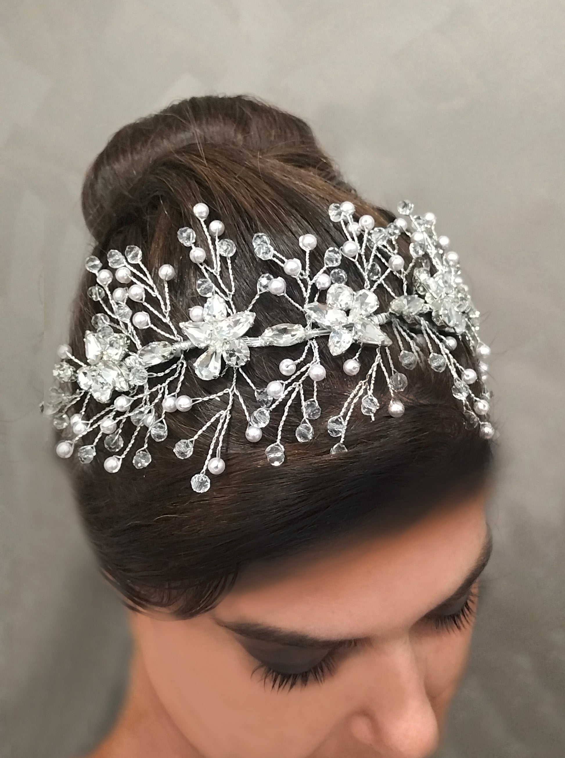 Accessorio bijoux modellabile, lavorazione con cristalli,perle e pietre strass swarovski, modellabile, fatto a mano, made in italy, personalizzabile.