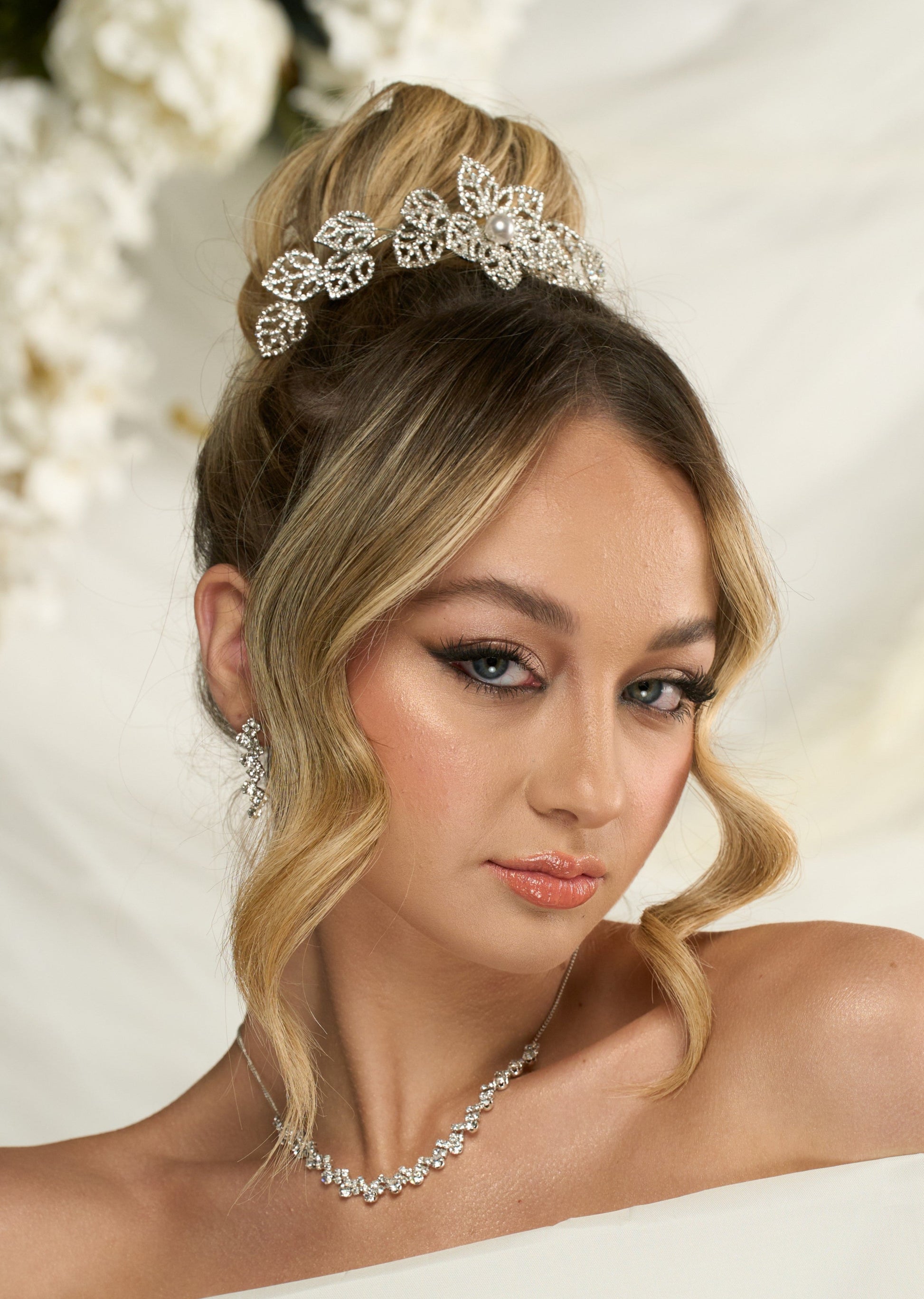 Accessorio bijoux modellabile, lavorazione con elementi in strass swarovski e un fiore centrale con perla, modellabile, fatto a mano, made in italy, personalizzabile.