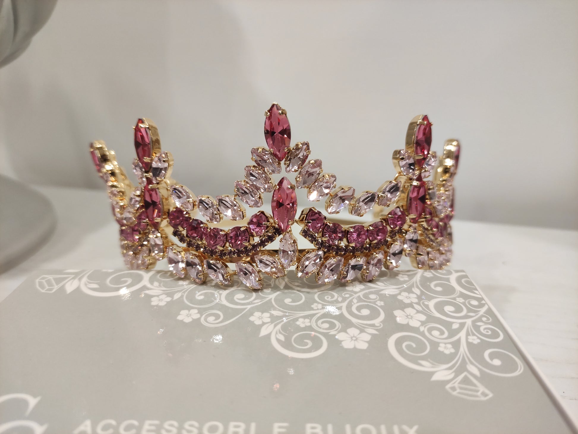 Corona bijoux con lavorazione di strass e pietre castonate Swaorvski o Preciosa, fatto a mano, made in italy, personalizzabile.