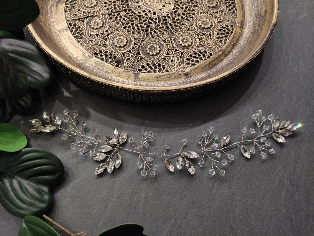 Filo modellabile bijoux con lavorazione di ramtti in cristalli swarovski e pietre taglio navetta, fatto a mano, made in italy, personalizzabile.