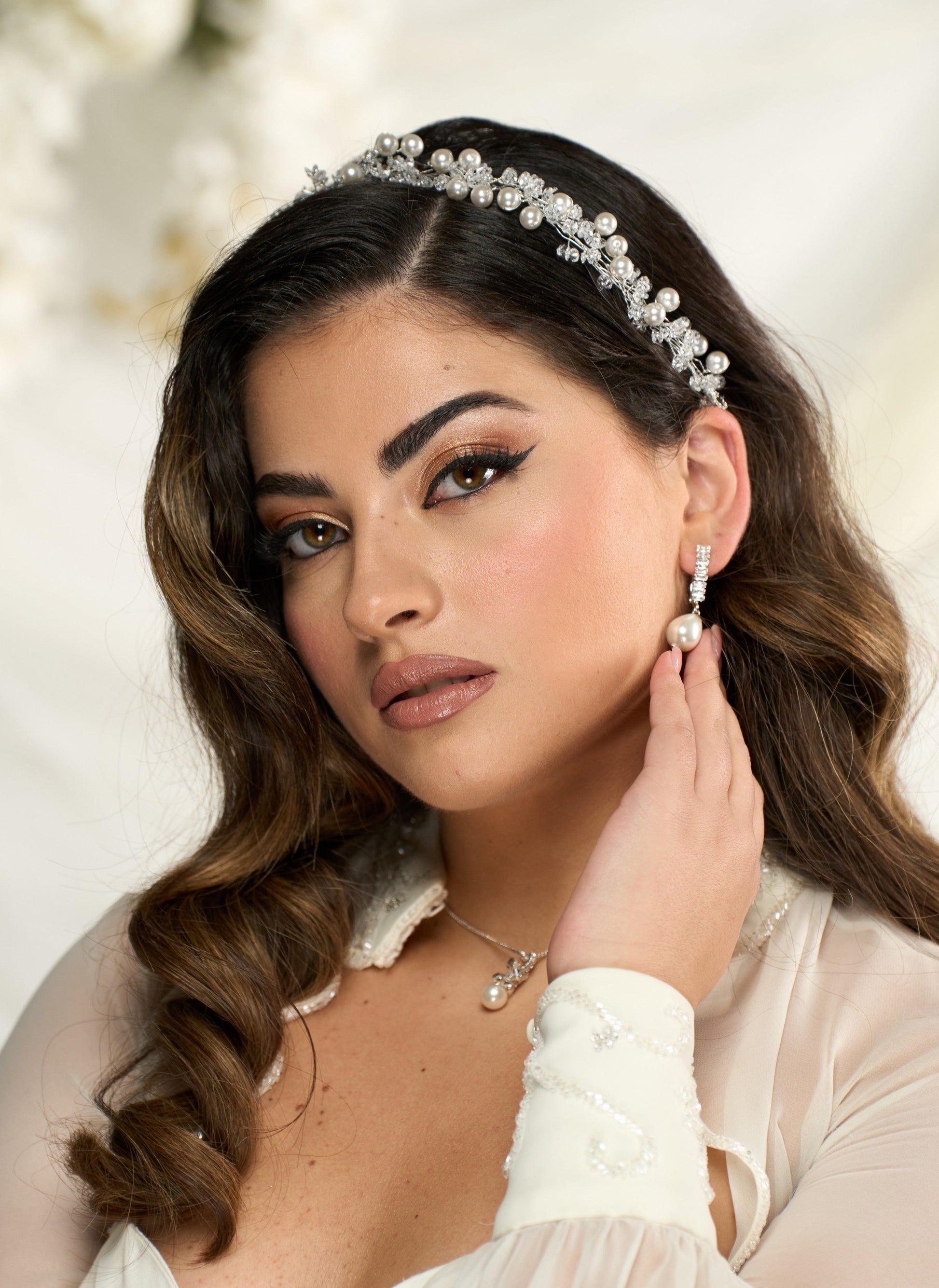 Filo modellabile bijoux da sposa, lavorazione con fiorellini in cristalli swarowski e perline, fatto a mano, made in Italy, lungo circa 25cm, con anellini finali per il fissaggio, personalizzabile.