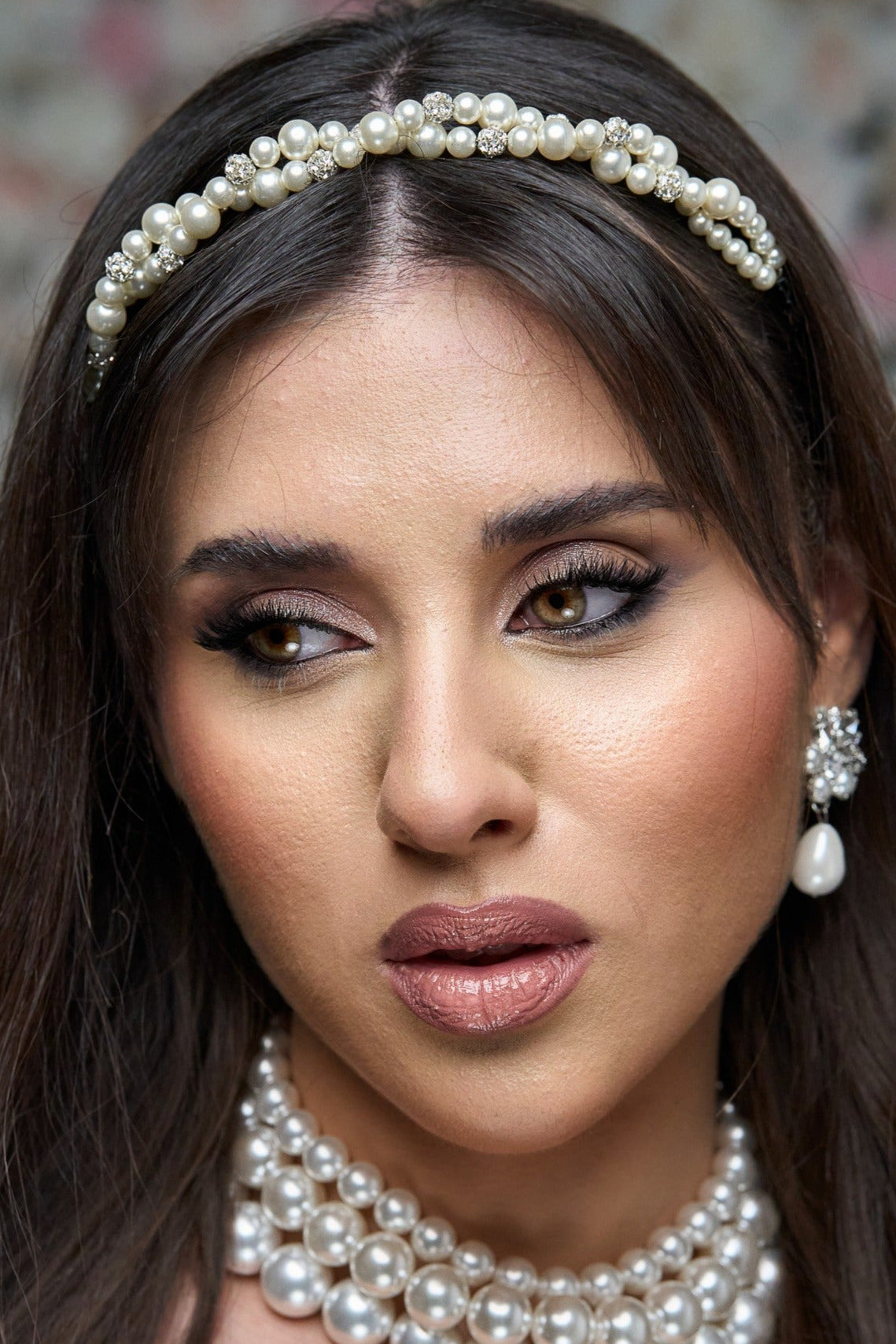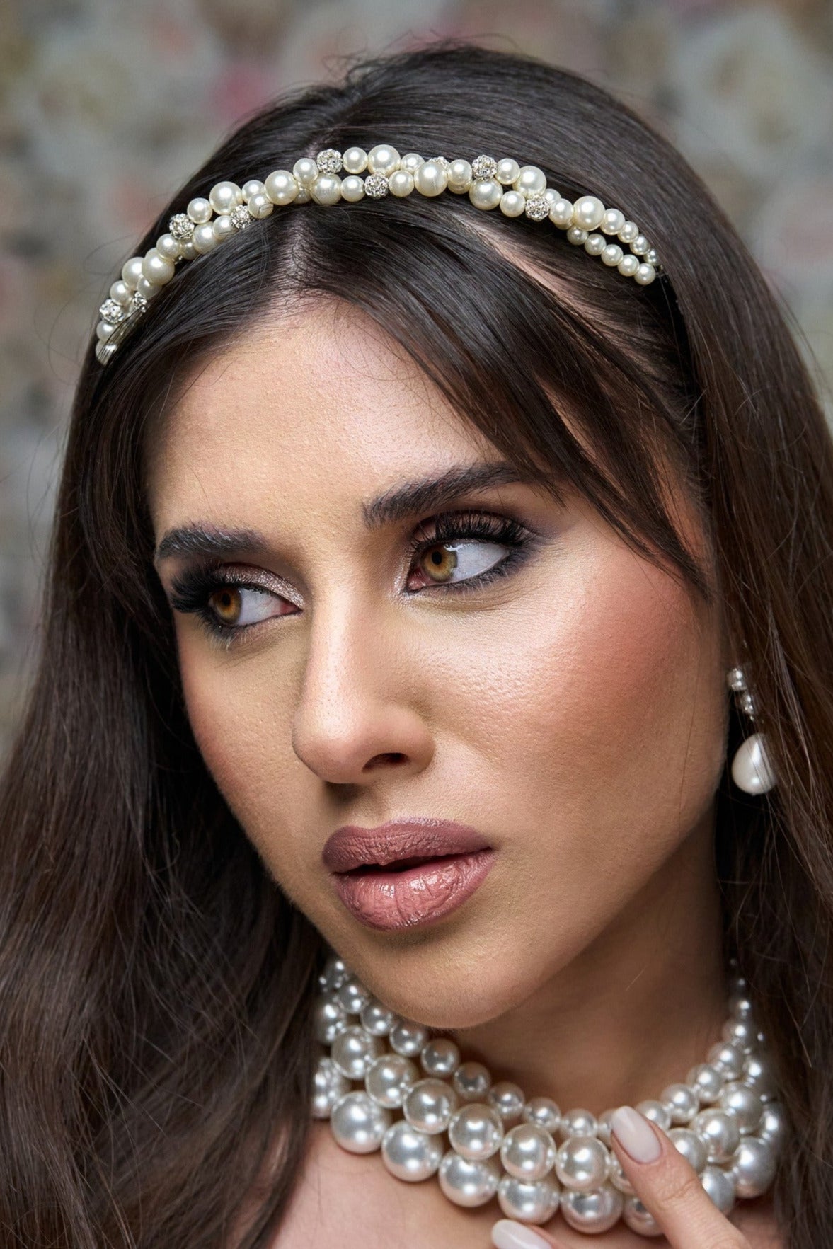 Accessorio modellabile bijoux da sposa, lavorazione con intreccio di perle e elementi strassati swarowski, fatto a mano, made in Italy, lungo circa 25cm, con anellini finali per il fissaggio, personalizzabile.
