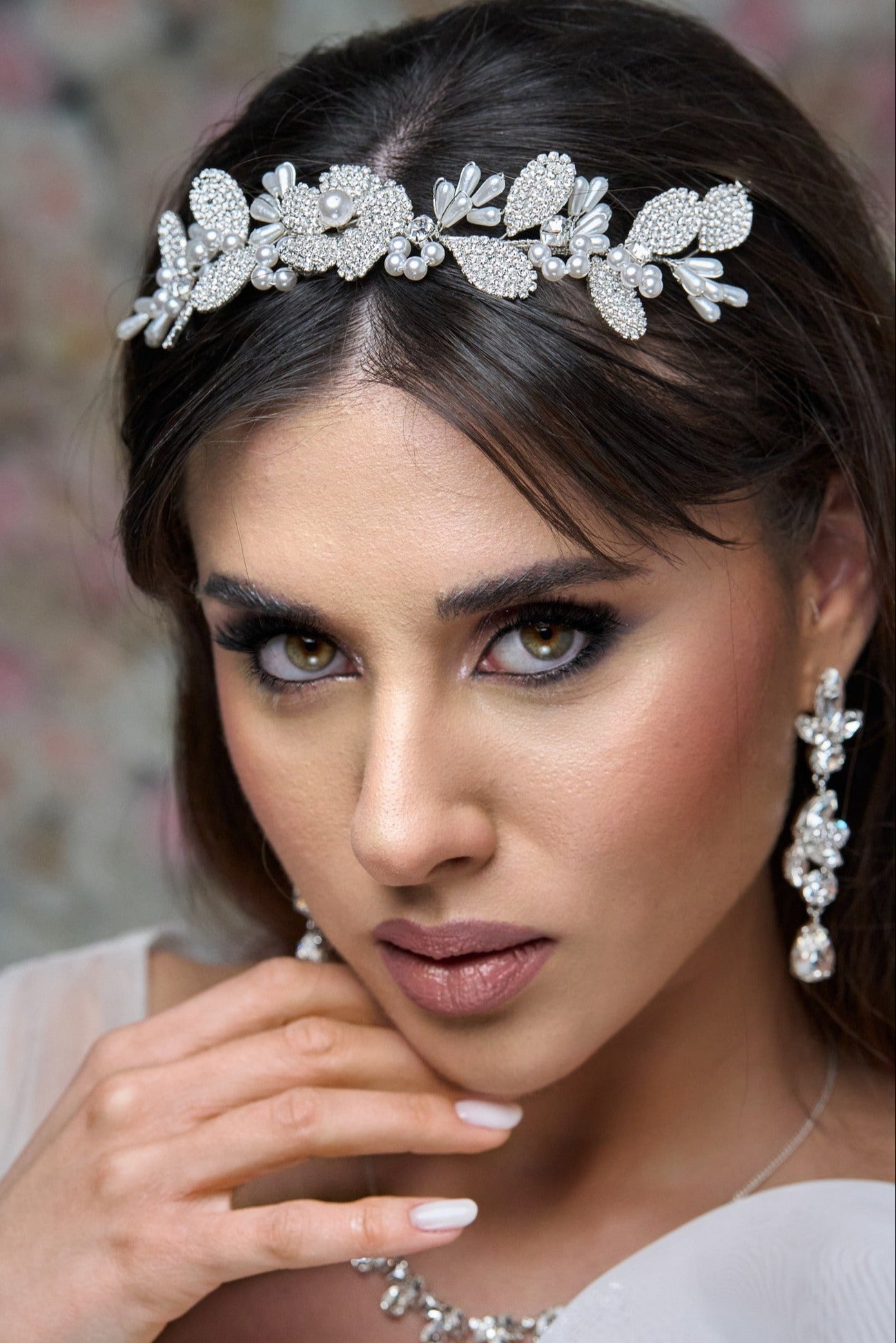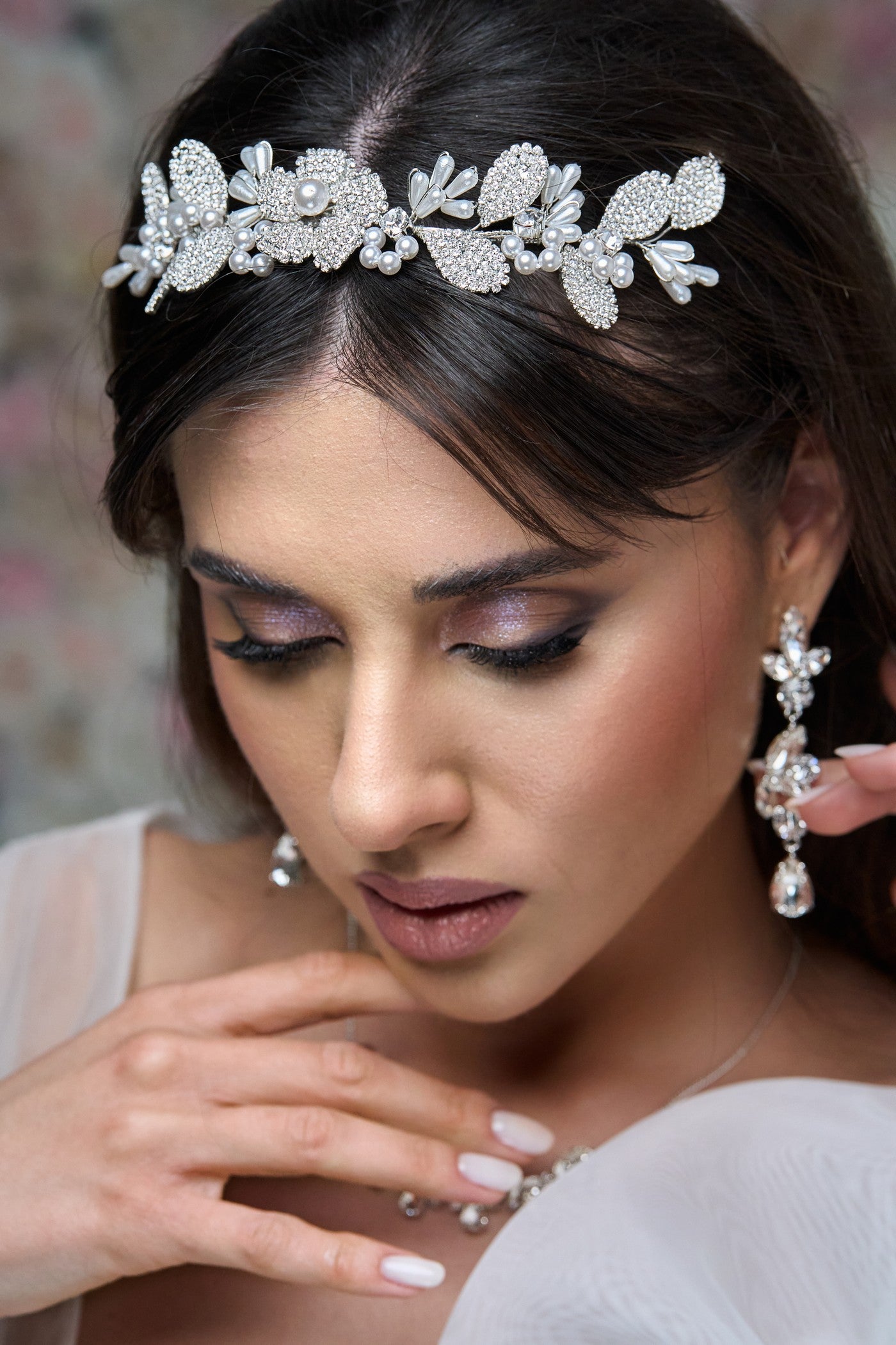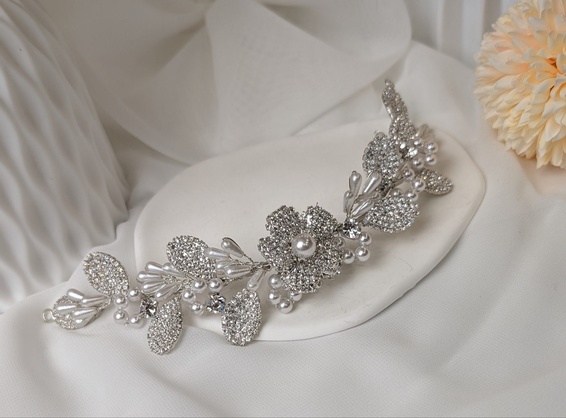 Accessorio bijoux modellabile, lavorazione con perle e foglioline in strass swarovski, modellabile, fatto a mano, made in italy, personalizzabile.