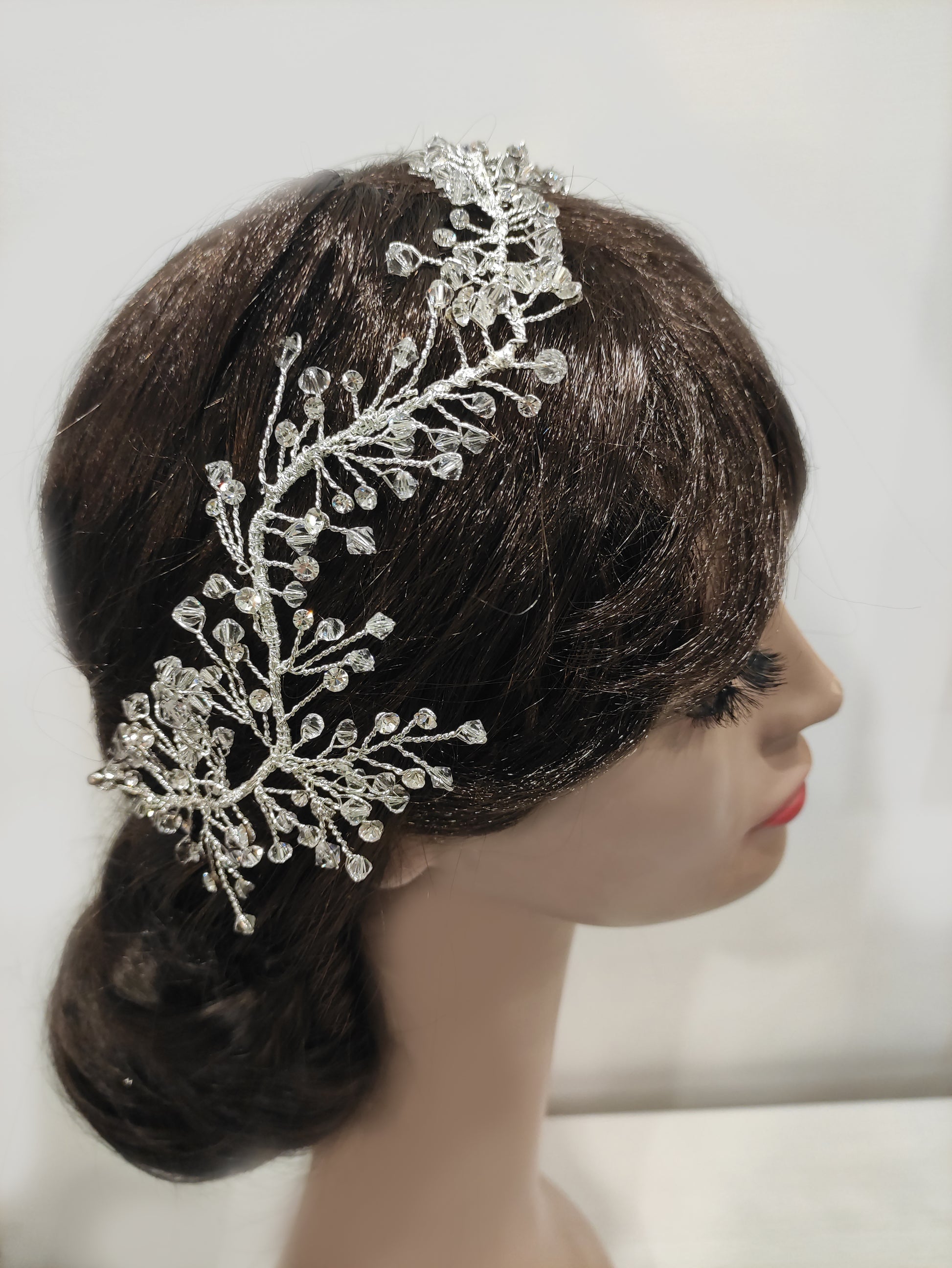 Accessorio bijoux da sposa, modellabile, lavorazione con ramage in cristalli e strasassini swarovski, largo da un lato si va assottigliando verso l'estremità, fatto a mano, made in italy, personalizzabile.