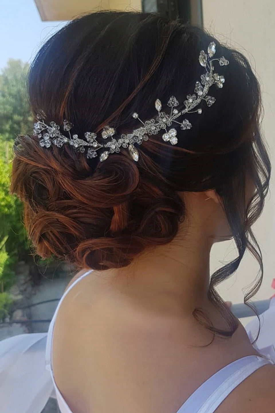 Modellabile bijoux con lavorazione in fiorellini di cristalli swaorvski e rametti con pietre castonate, fatto a mano, made in italy, personalizzabile.