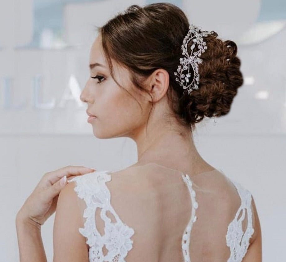 Accessorio bijoux modellabile, con cristalli e perline, al centro anima con navette e strass, fatto a mano, made in italy, personalizzabile.